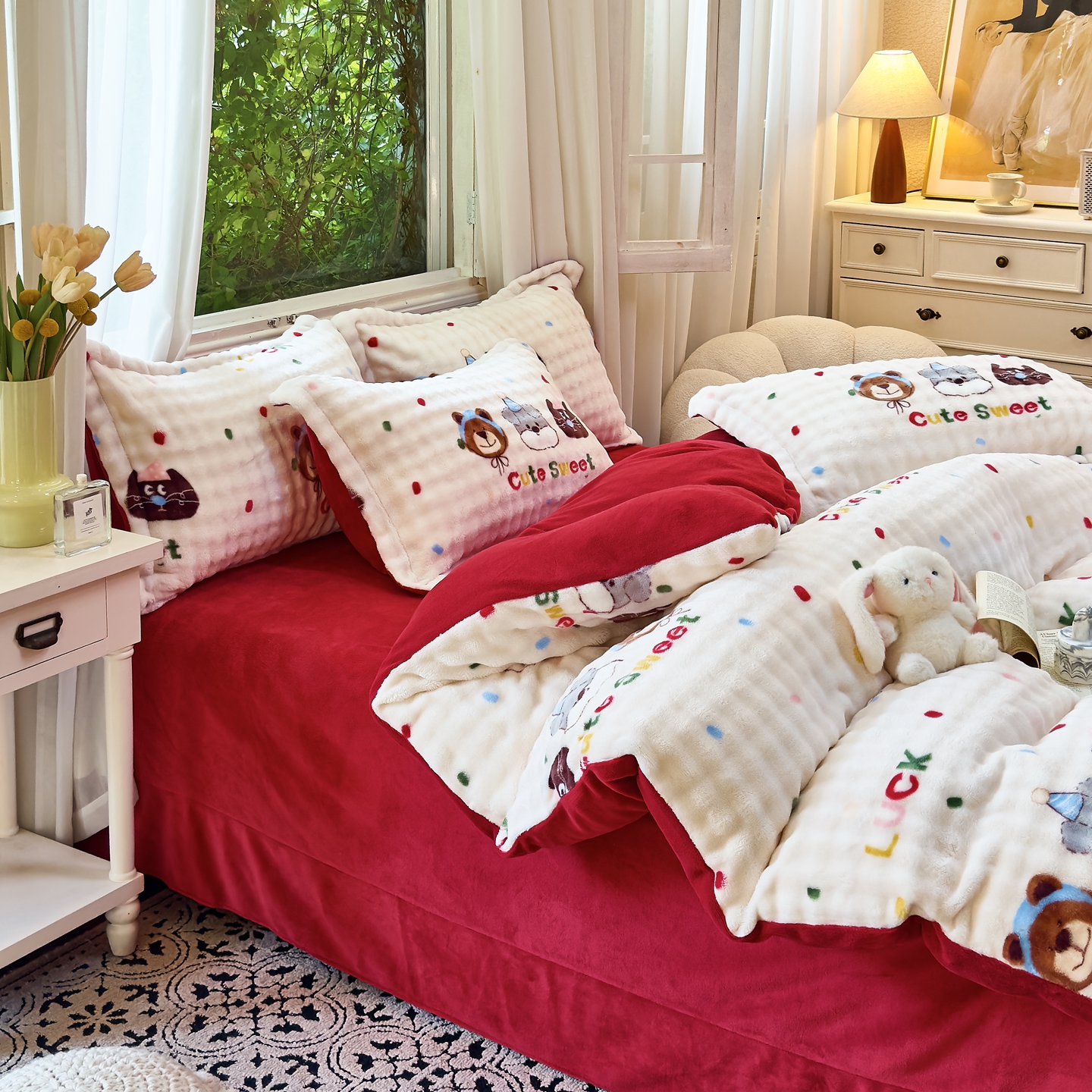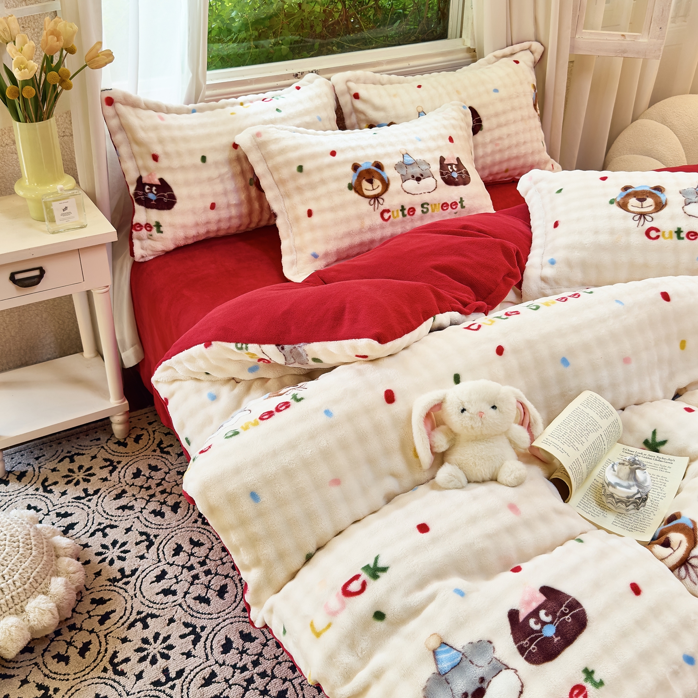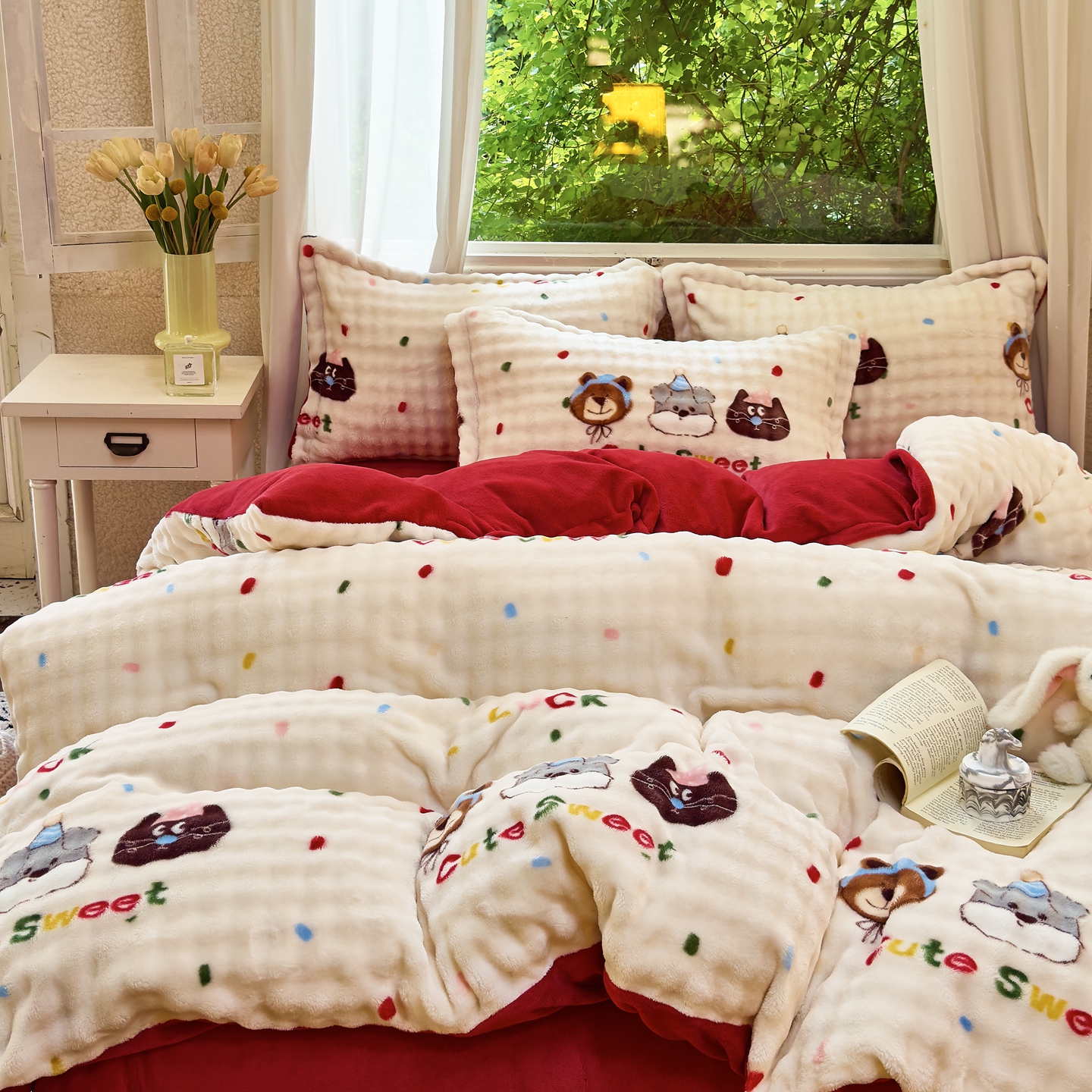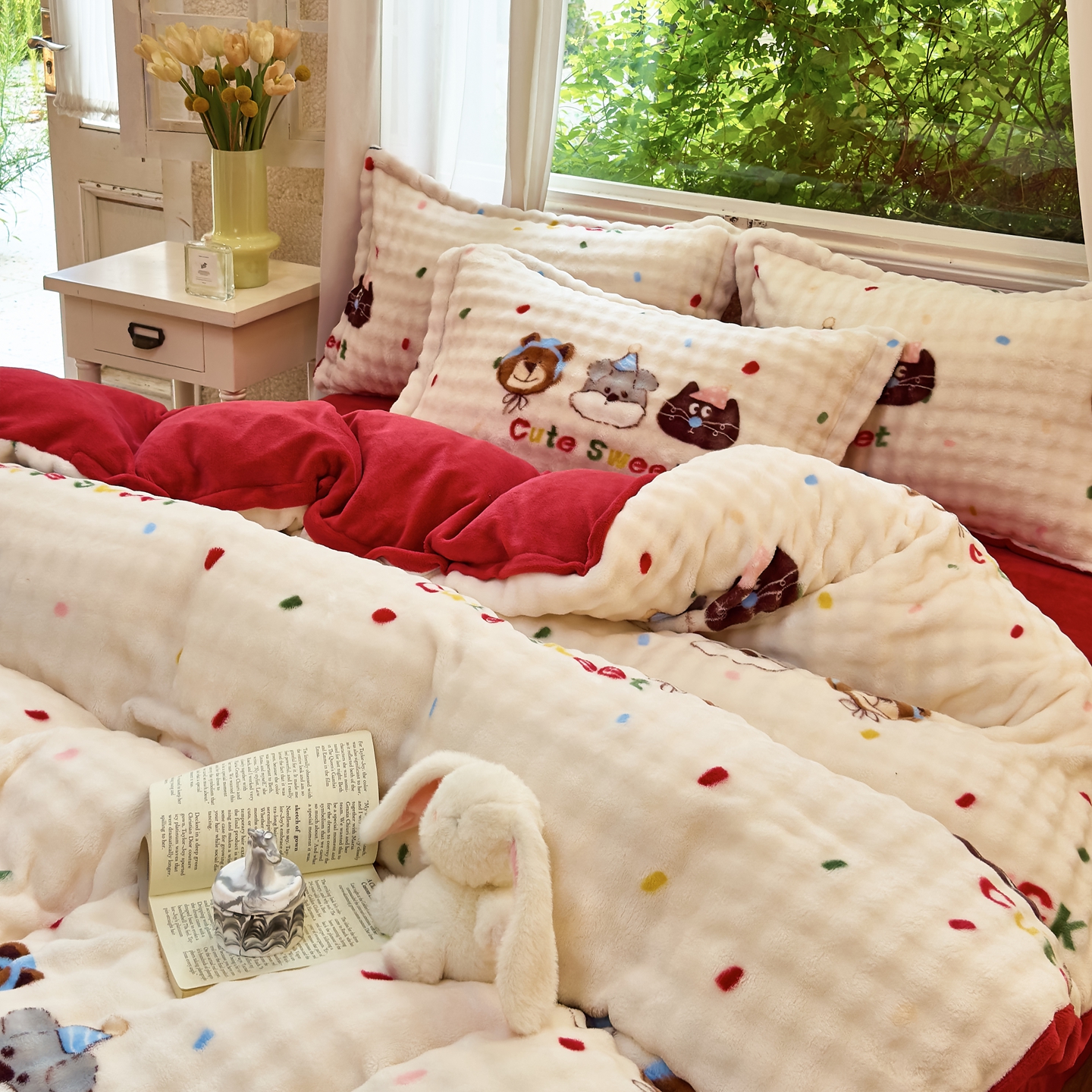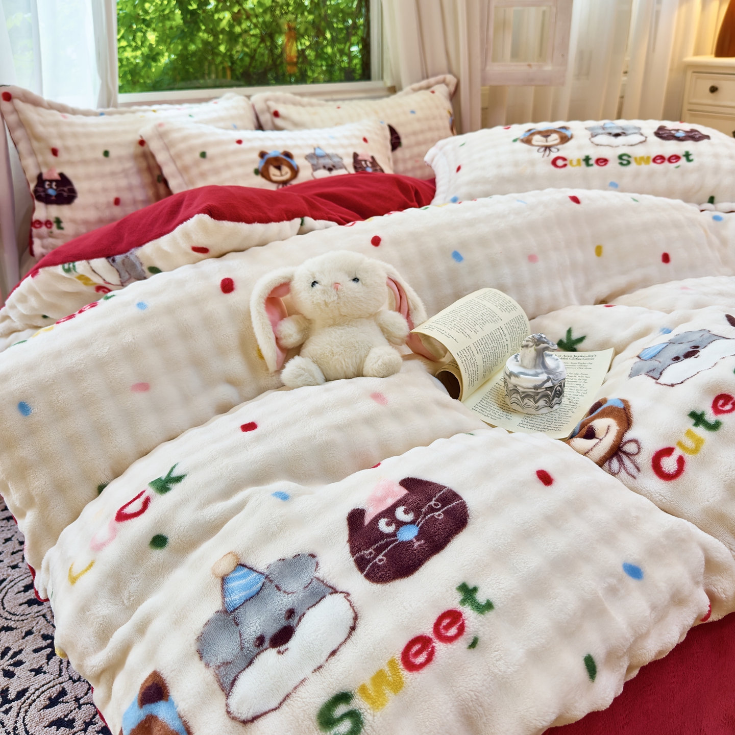 梦莱斯 2025秋冬新款高克重牛奶绒四件套 狗狗伙伴