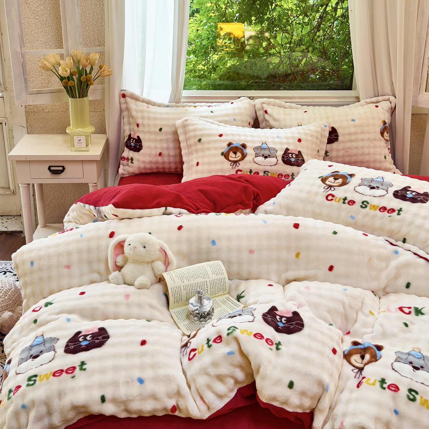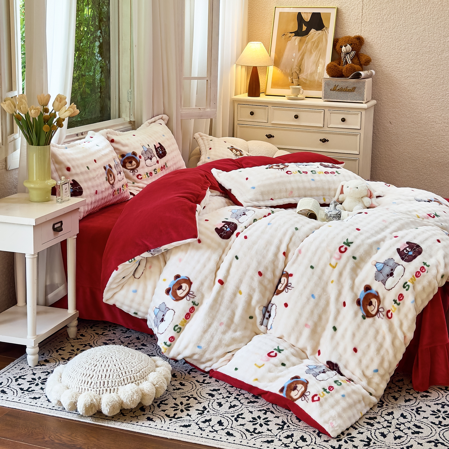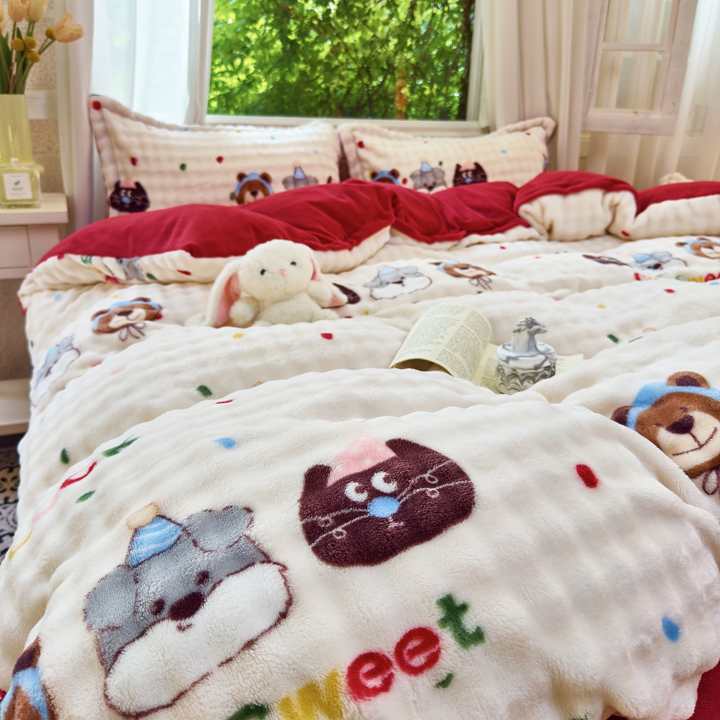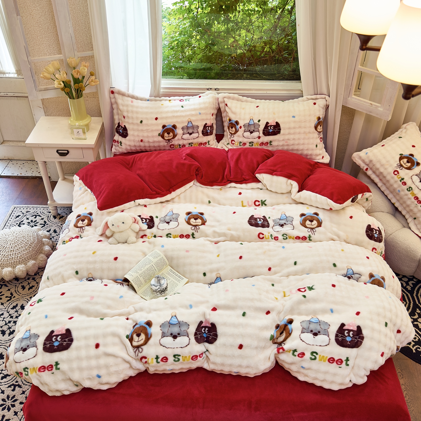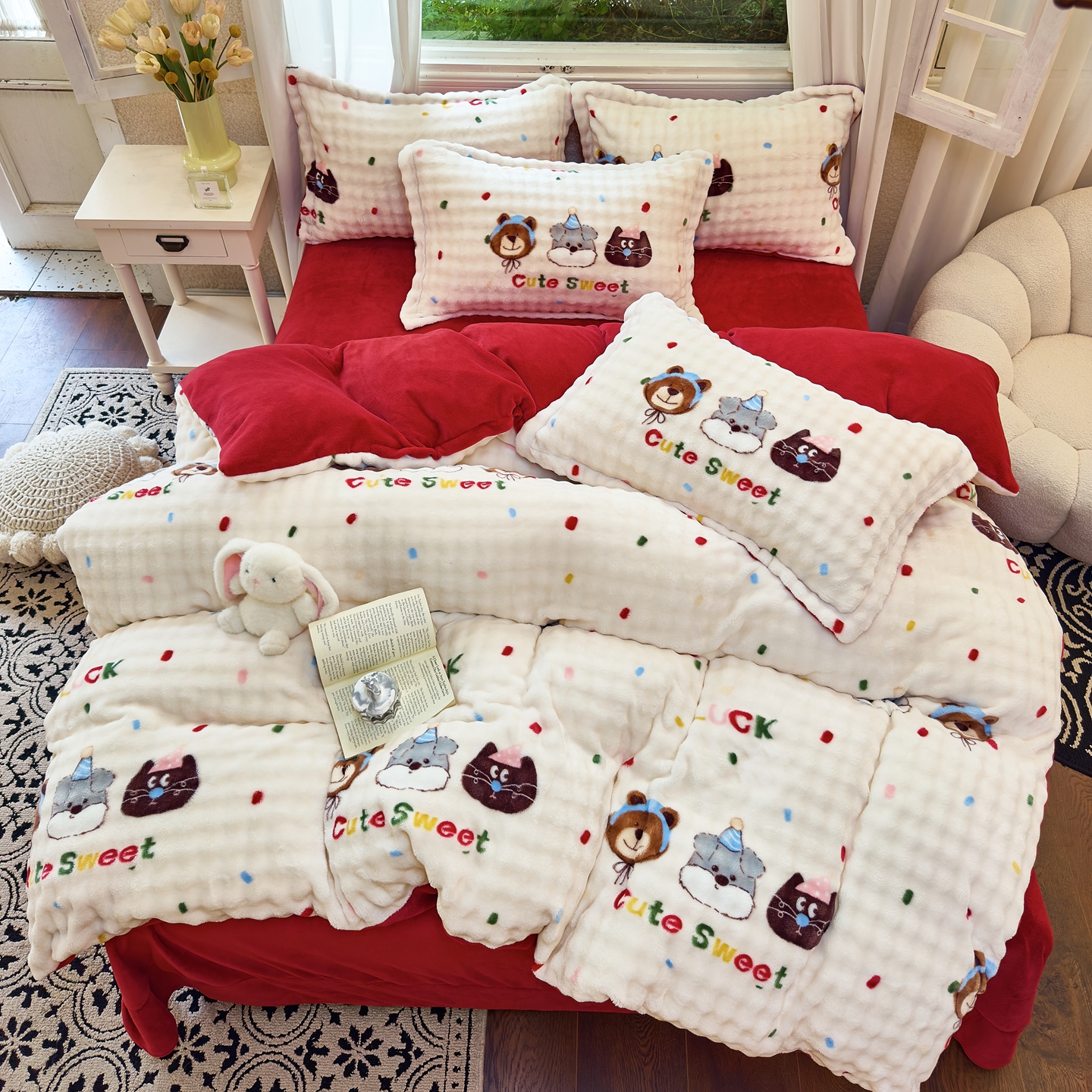 梦莱斯 2025秋冬新款高克重牛奶绒四件套 狗狗伙伴