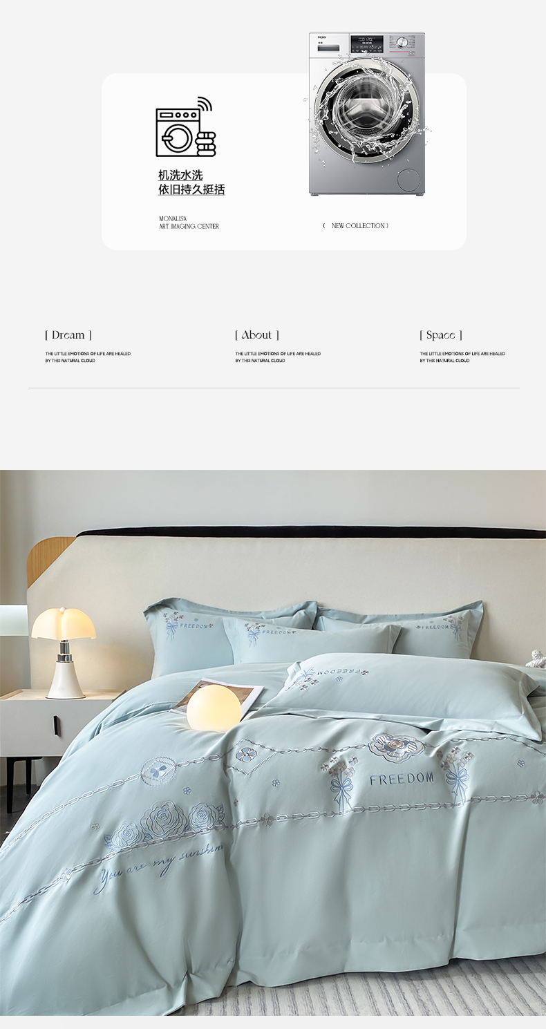 (总)桃园 2025新款全棉长绒棉刺绣绣花四件套-西西里系列,飘蓝,轻奢粉,绅士灰,香槟