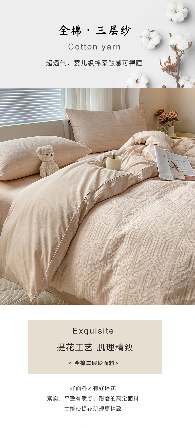 当前位置: 91家纺网 > 商品网购 > 床品套件 > 四件套 > 水洗棉四件套 > 宜代光年 2025新款三层纱60s水洗棉提花系列四件套 陌上花开-粉