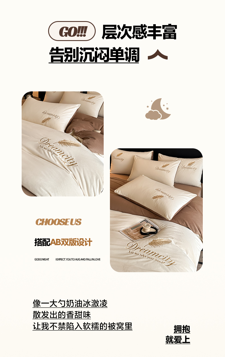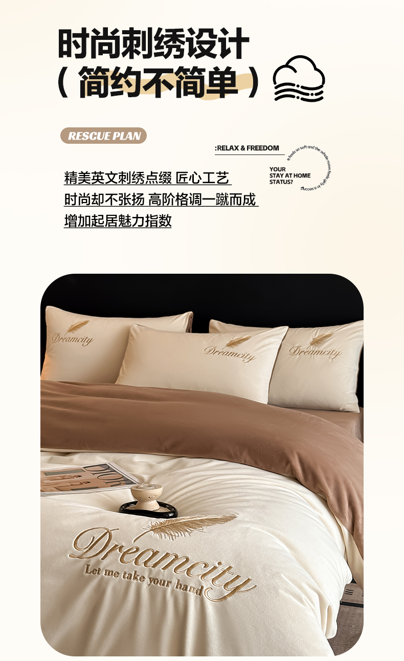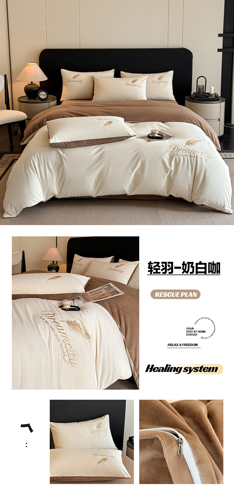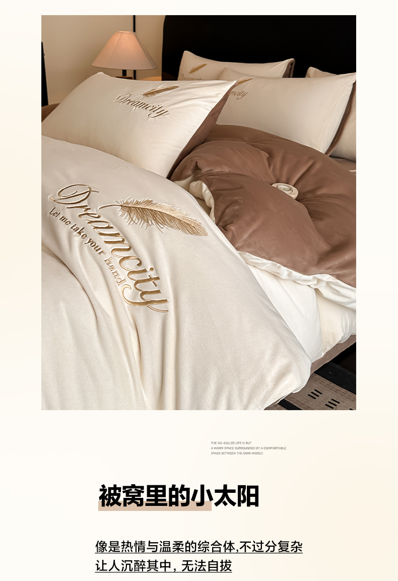 当前位置: 91家纺网 > 商品网购 > 床品套件 > 四件套 > 水晶绒四件套 > 如一 2025新款水晶绒刺绣四件套 轻羽-奶白咖