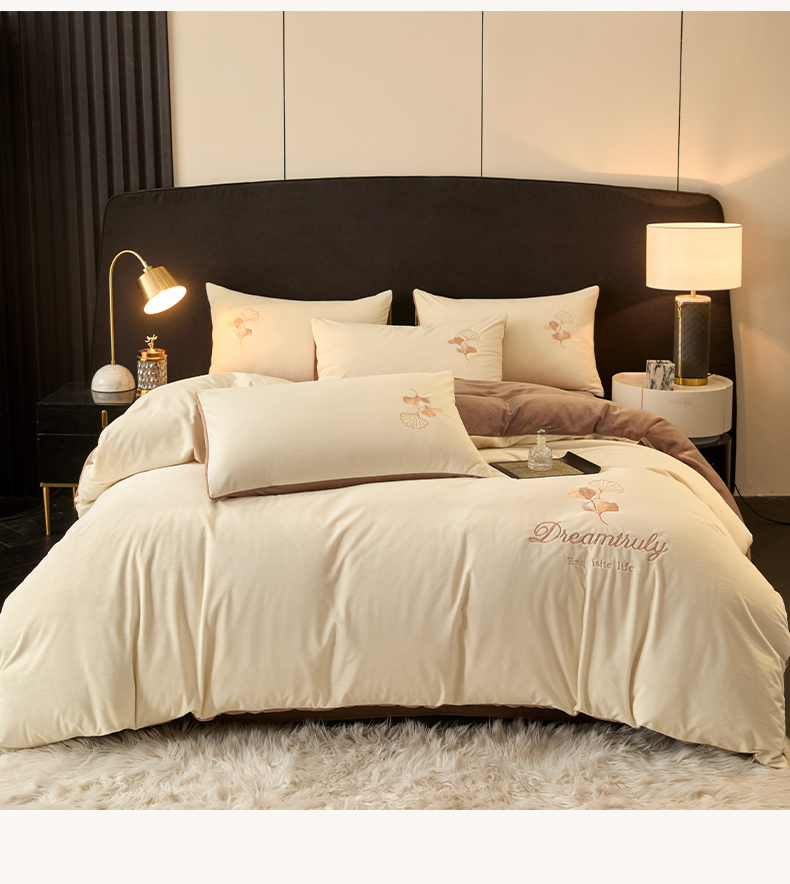 当前位置: 91家纺网 > 商品网购 > 床品套件 > 四件套 > 水晶绒四件套 > 如一 2025新款水晶绒刺绣四件套 银杏-奶白咖