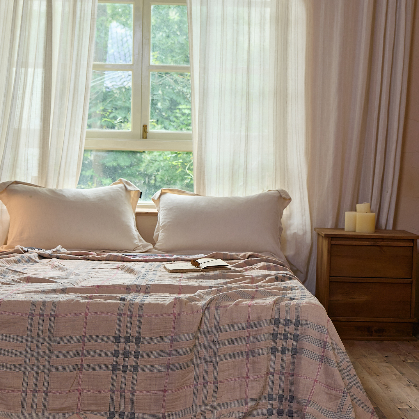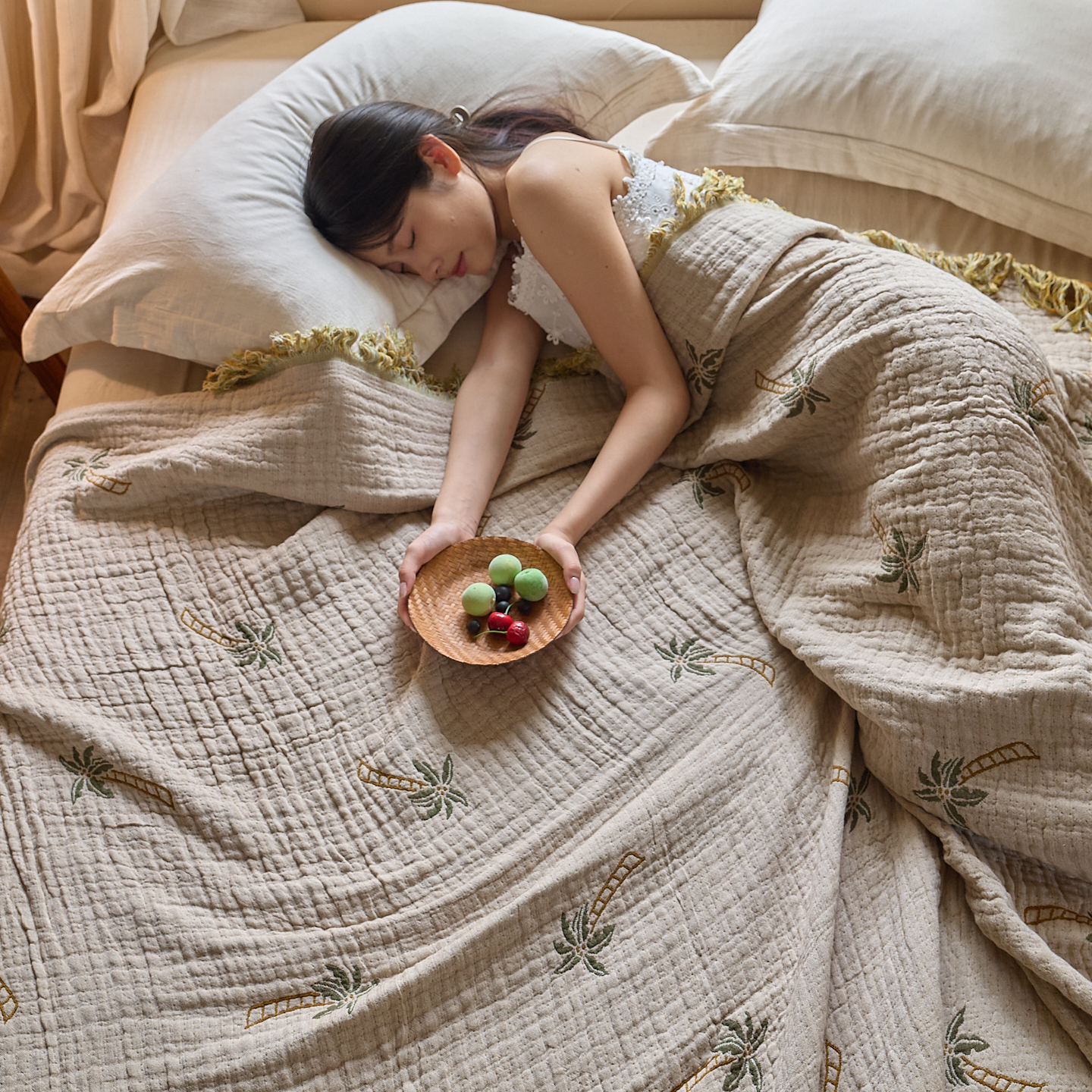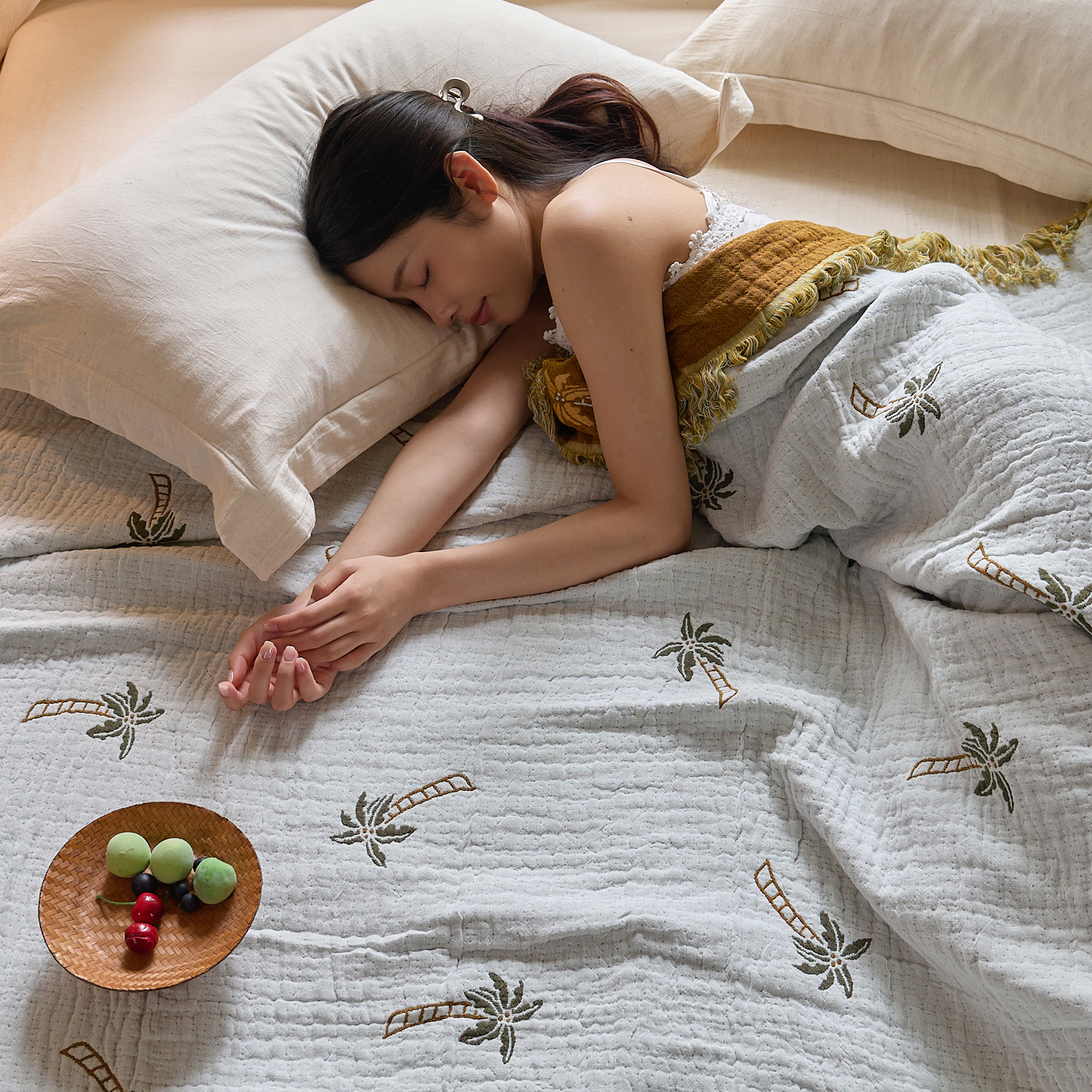 (总)沐瑟家纺 2025新款简约风多功能纱布盖毯纱布毯子毛巾被床盖沙发巾单毯枕巾枕套三件套,H本色,H橙色,H咖色,大马士革本色