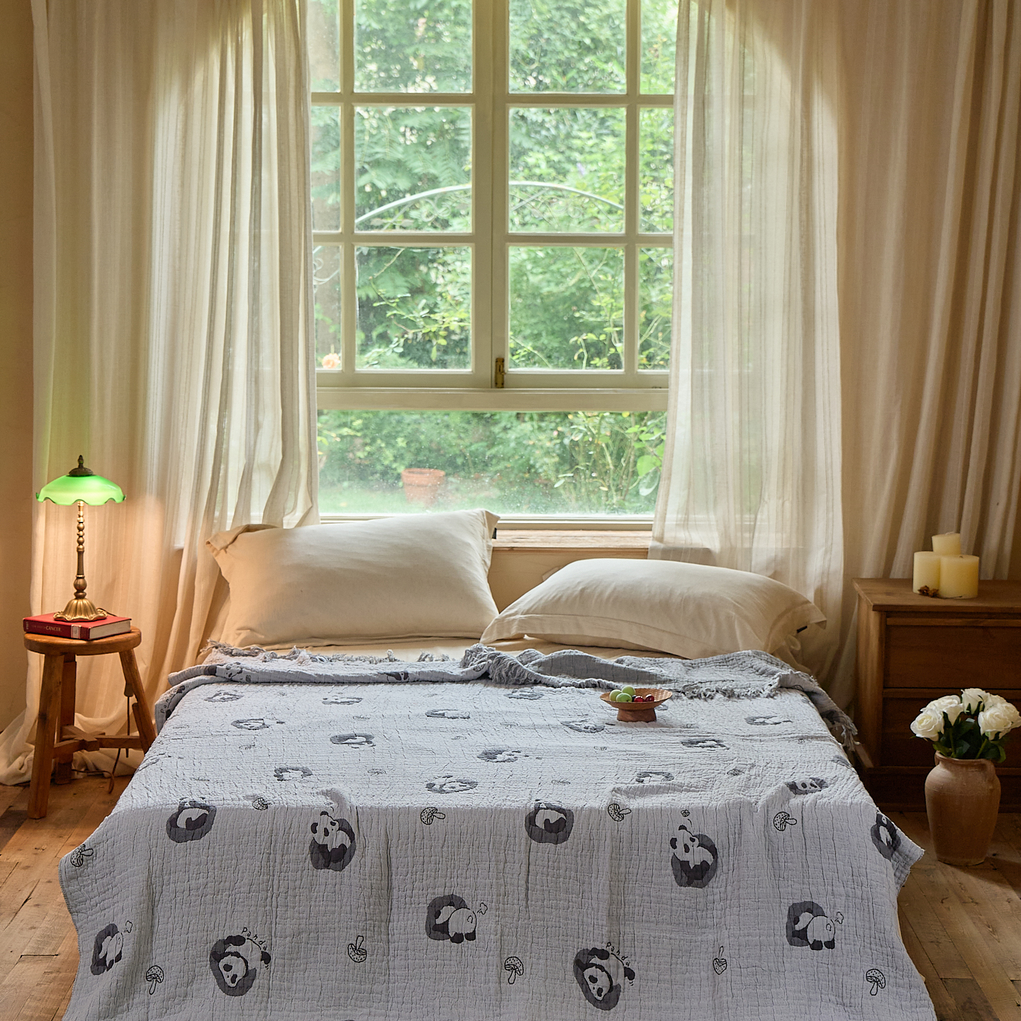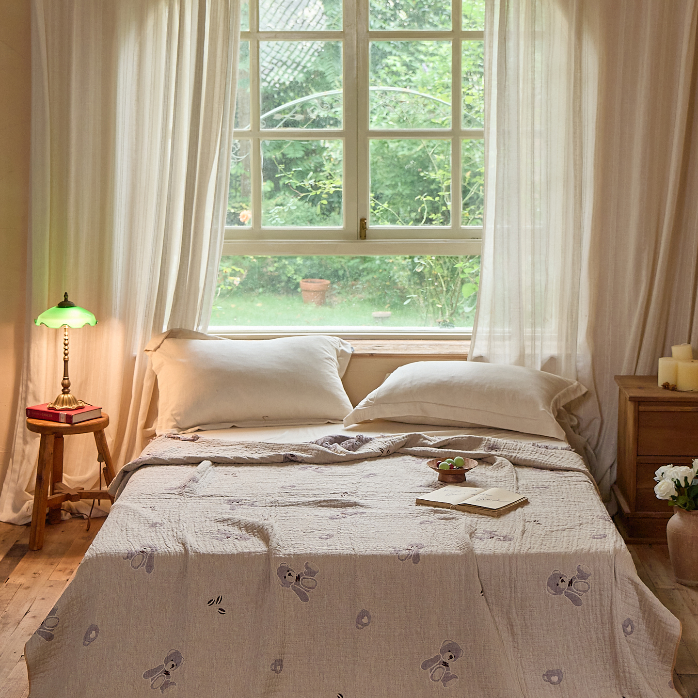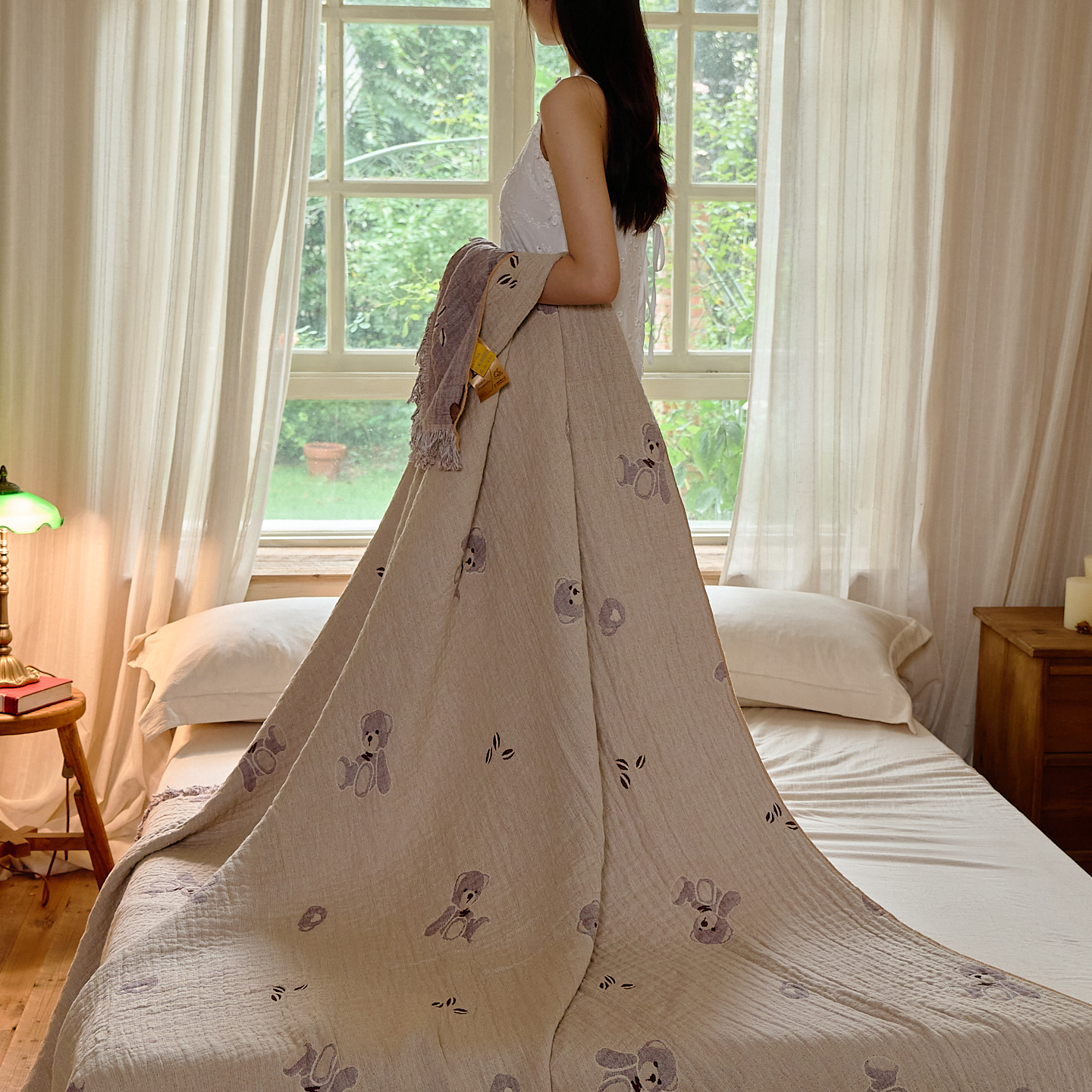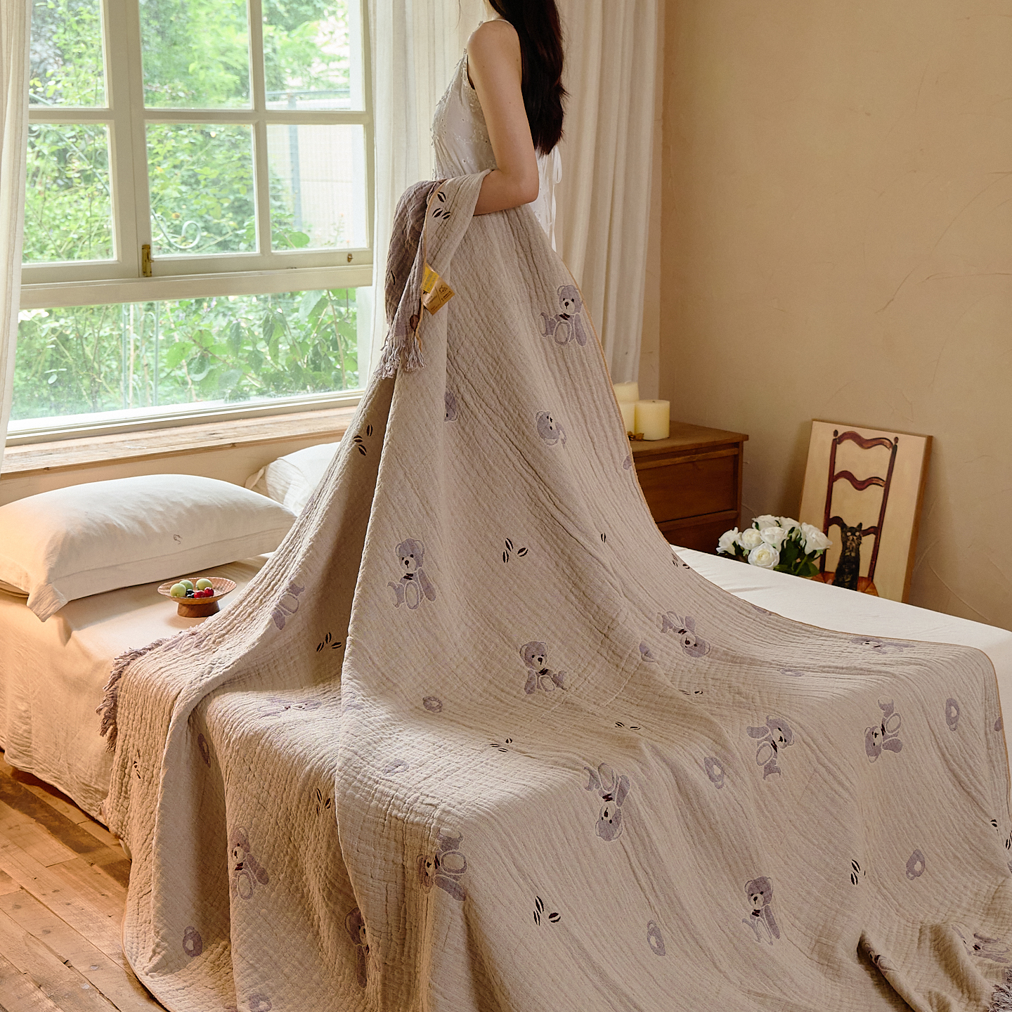 沐瑟家纺 2025新款亲肤全棉纱布盖毯毯子 熊仔派对