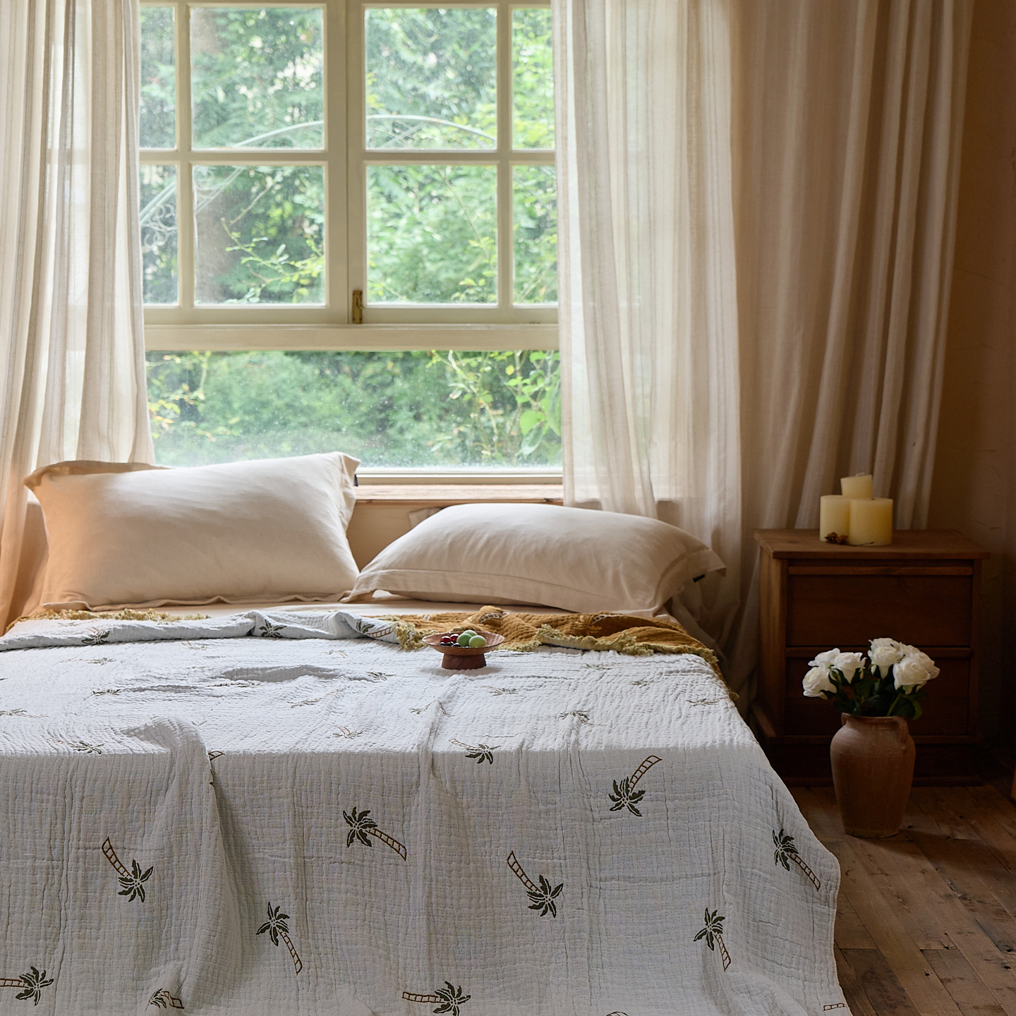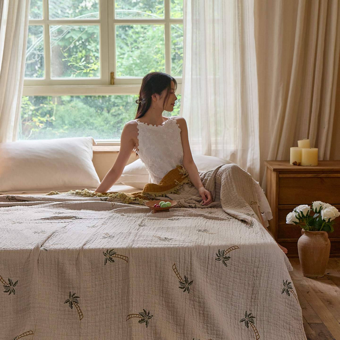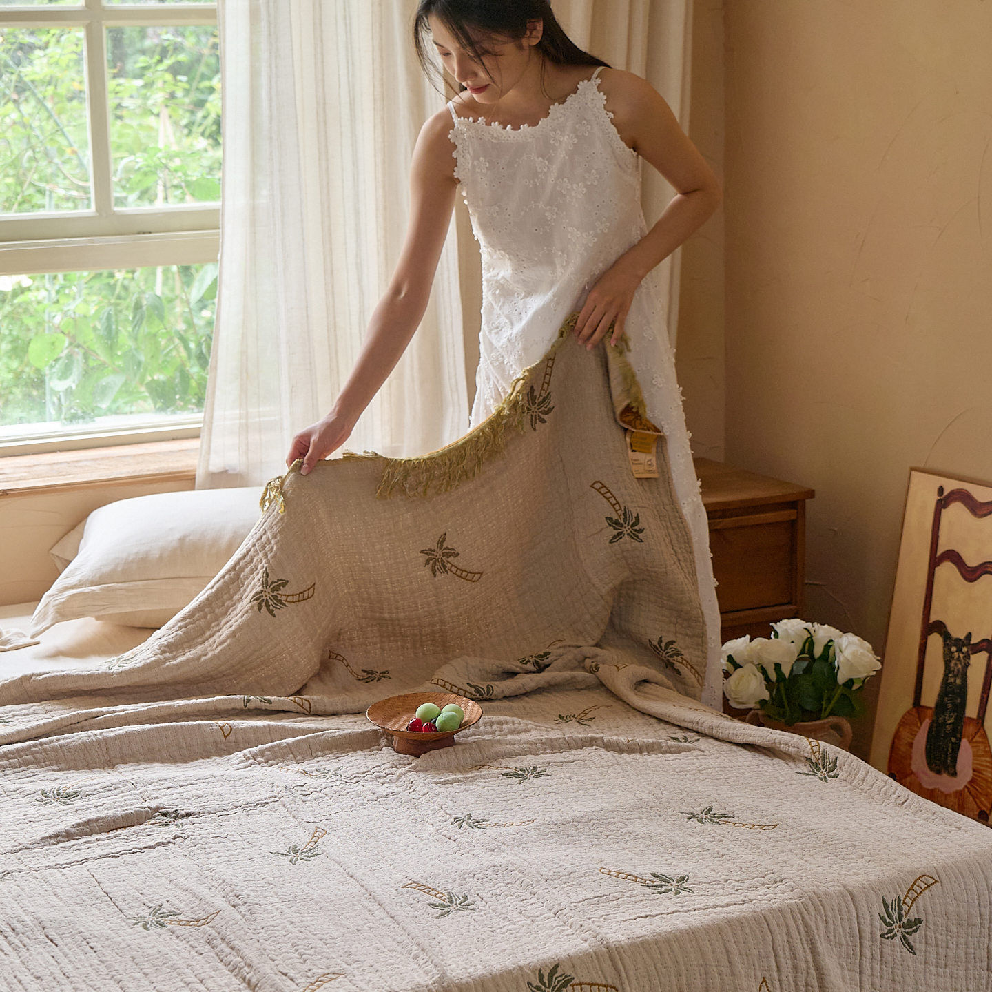 (总)沐瑟家纺 2025新款全棉纱布细纱布大床盖毯子床盖三件套LV系列,LV咖色,春意浓,玫瑰之约,小天鹅-绿,绽放-红色,绽放-姜黄