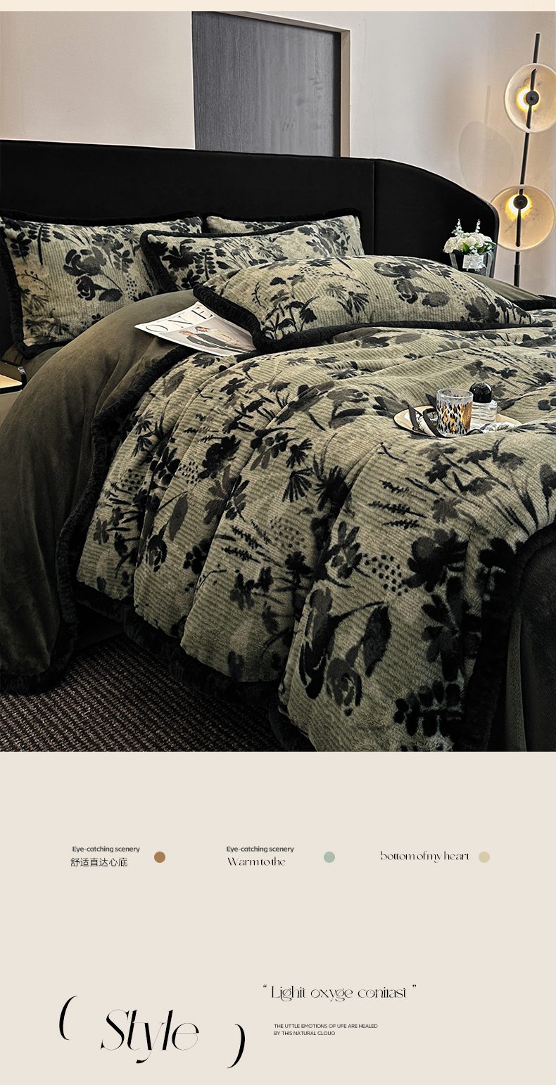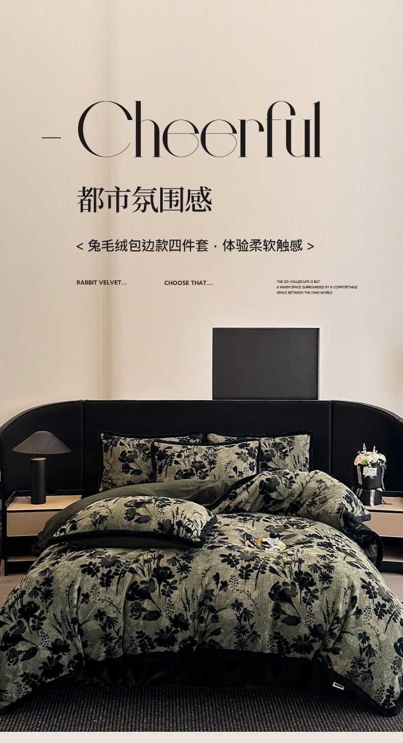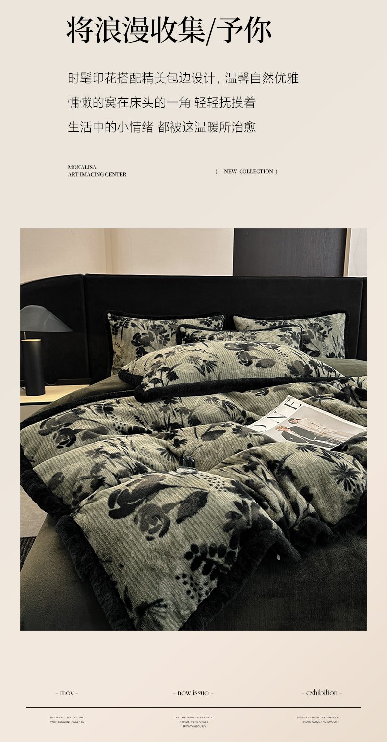 商品名称:畅畅家纺 2025新款高克重新款冬季加厚兔毛绒包边款床单床笠四件套 暗香