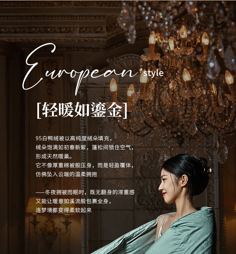 • 91家纺网 家纺一手货源 找家纺 暖羽屋羽绒馆 2025新款95鸭绒被子 盛世典雅 白鸭绒被芯 双人羽绒被冬被 春秋被 盛世典雅 白