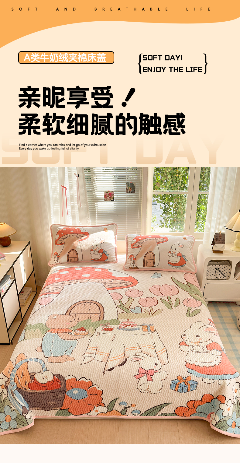 商品名称:寐居家纺 2025新款牛奶绒数码大版单床盖 唤春假日