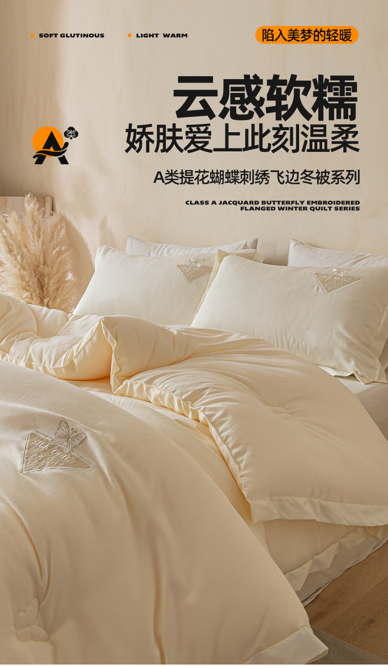 • 91家纺网 家纺一手货源 找家纺 (总)宝士康家纺 2025新款提花蝴蝶刺绣飞边冬被 被子被芯