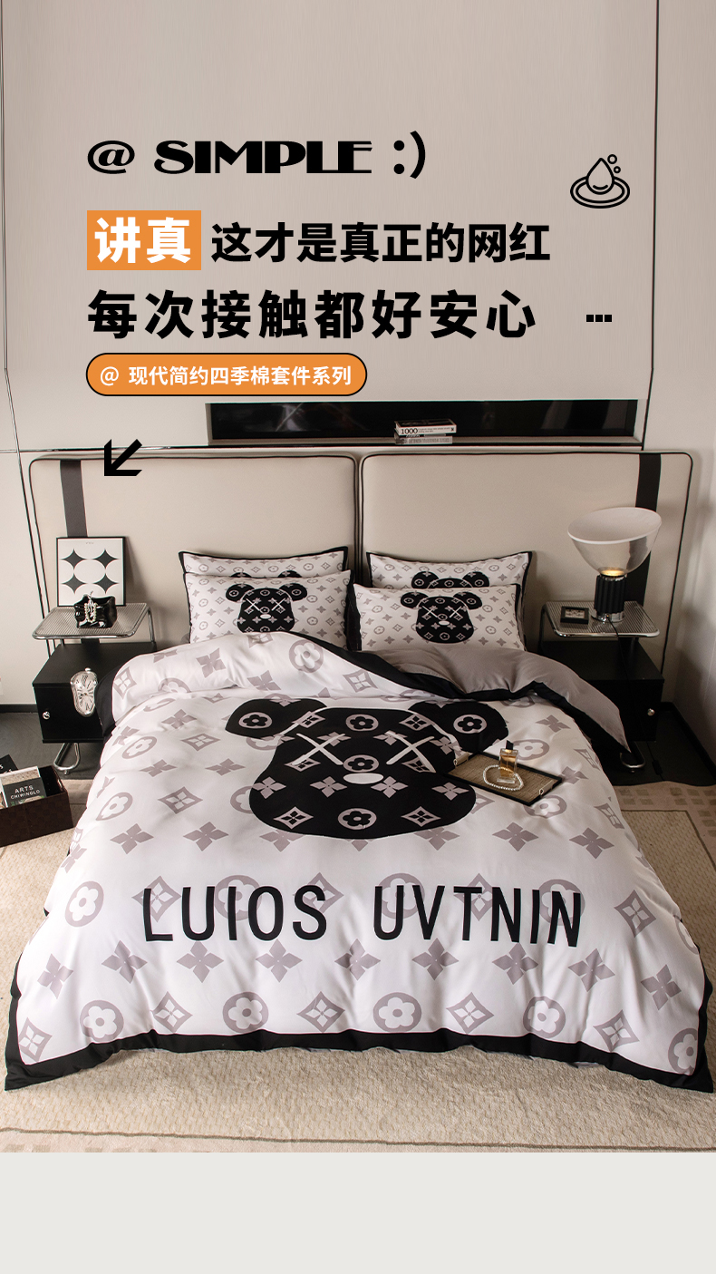 (总)色鬼布艺高端家居主号 2025新款现代简约网红款四季棉四件套,电击熊,多巴胺,黑白迪,机器熊,咔芬,流沙,萌迪,萌熊队长,七彩熊,棋盘格公仔,太阳花粉,涂鸦熊,星空,熊头白,熊仔白,熊仔桔,熊仔咖