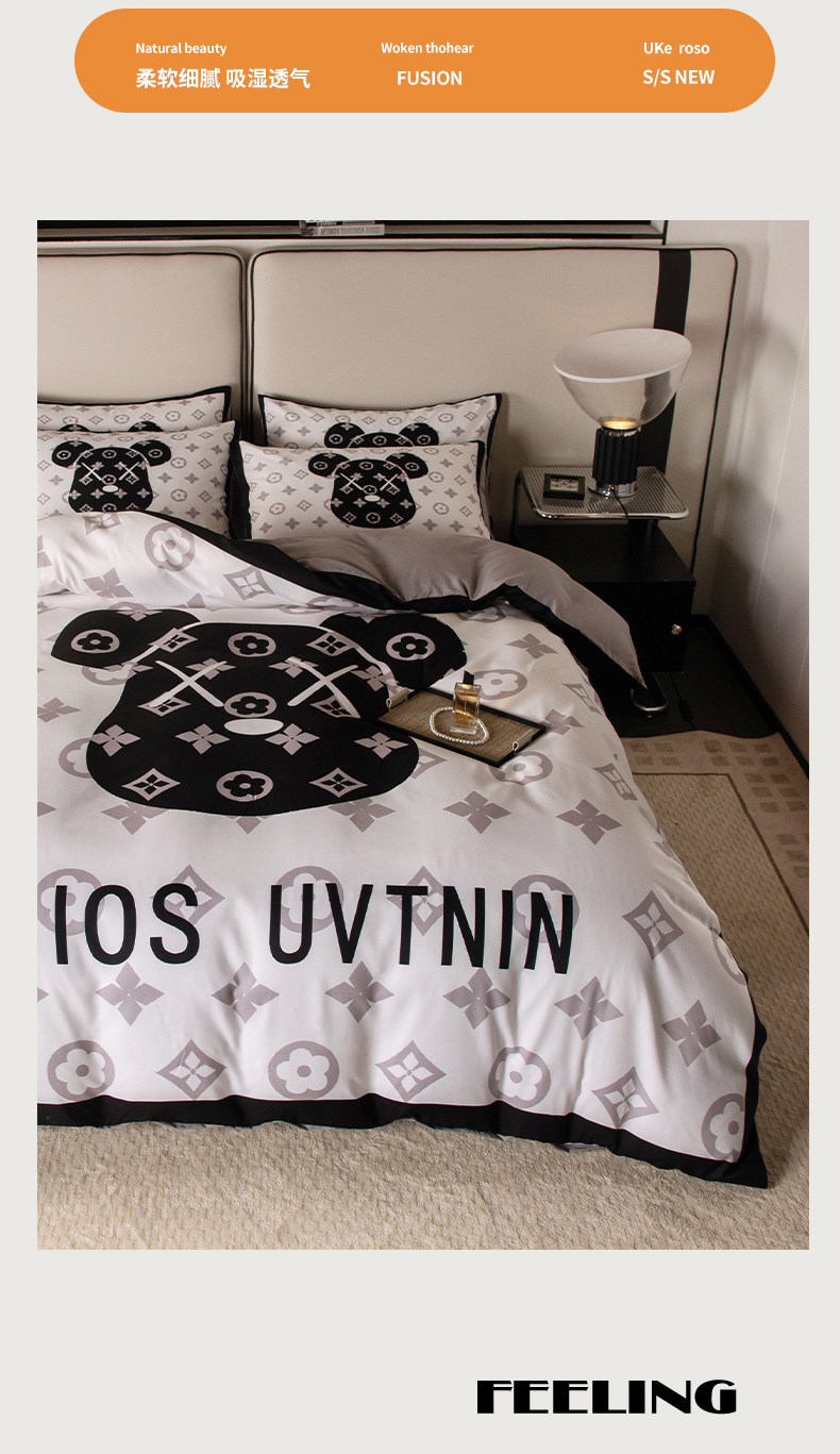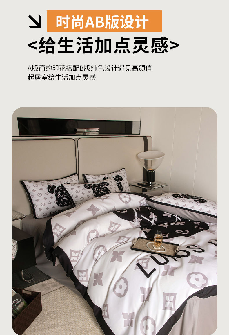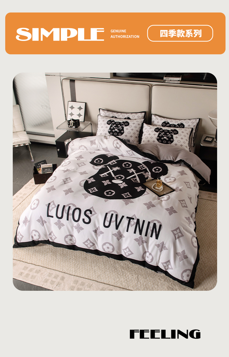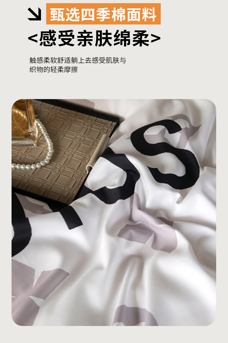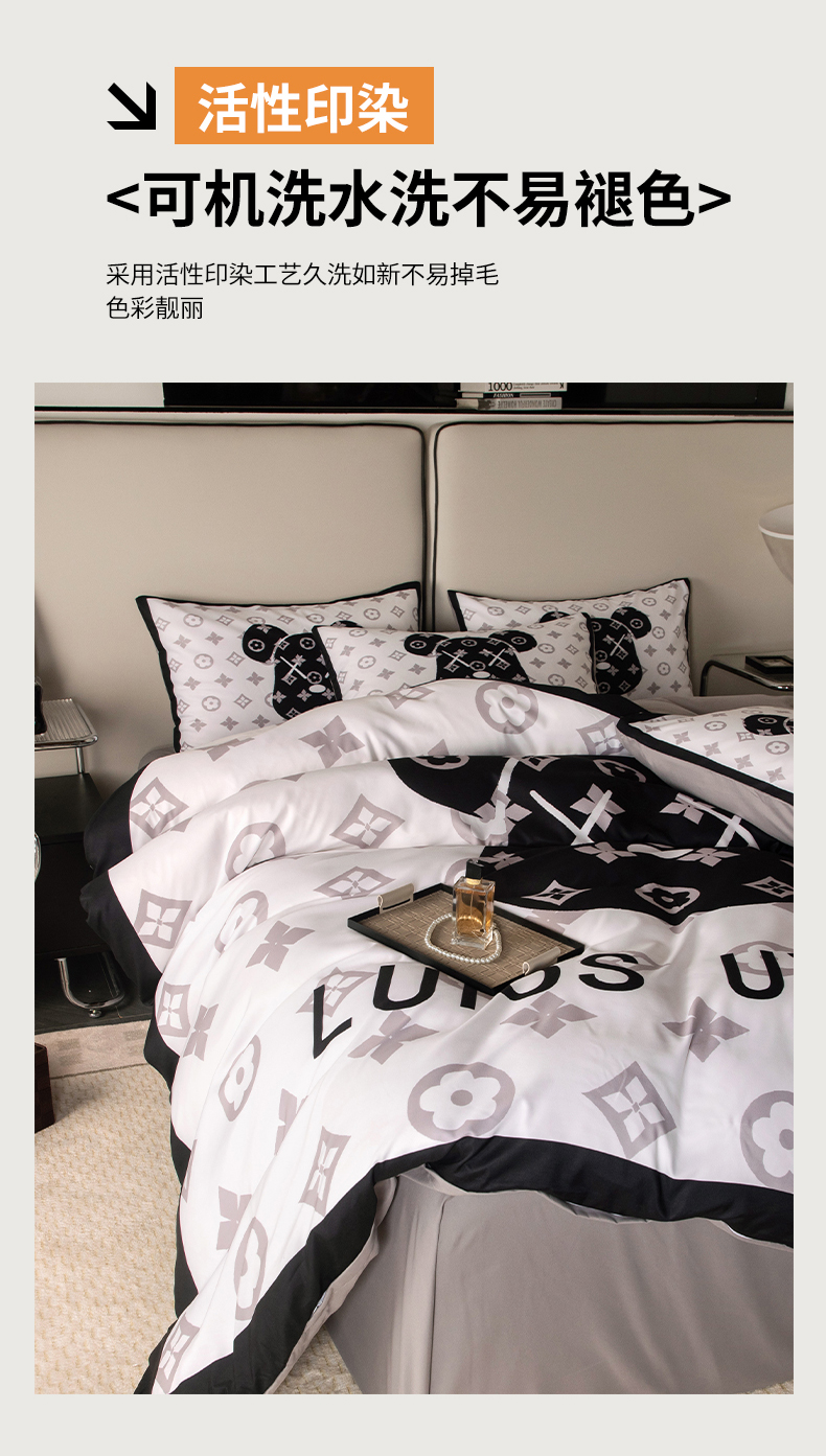 (总)色鬼布艺高端家居主号 2025新款轻奢亲肤纯棉数码印花网红热款四件套,豹纹香,白金V,白香花,大H,黑白迪,黑白V,灰迪,咖古,克莱因,慕斯小姐,山茶花,星空