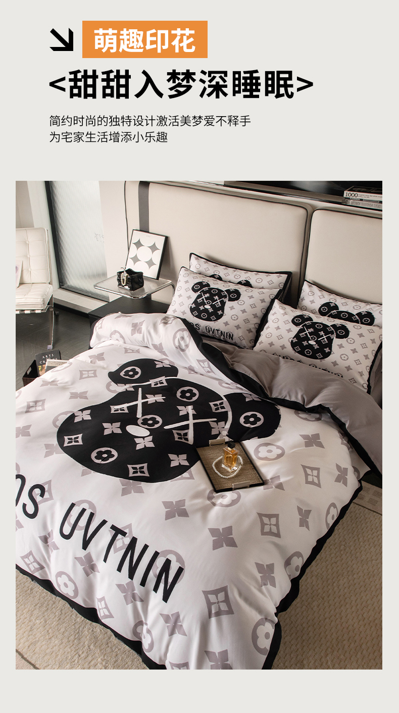商品名称:色鬼布艺高端家居主号 2025新款直播热款网红款四季棉四件套 熊头白