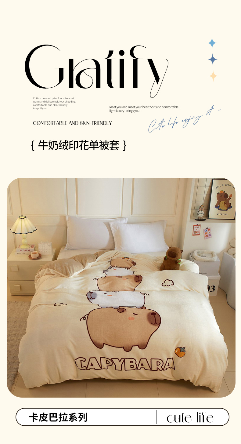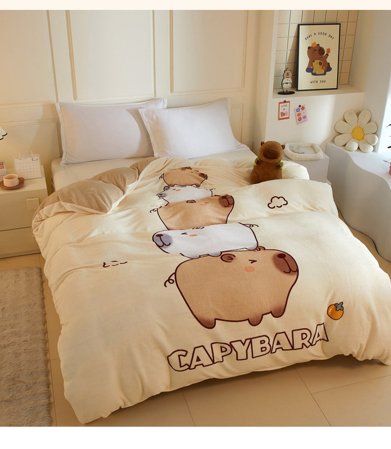 蘭菲家纺 2025新款卡皮巴拉牛奶绒单被套 被套单件 沉浸式