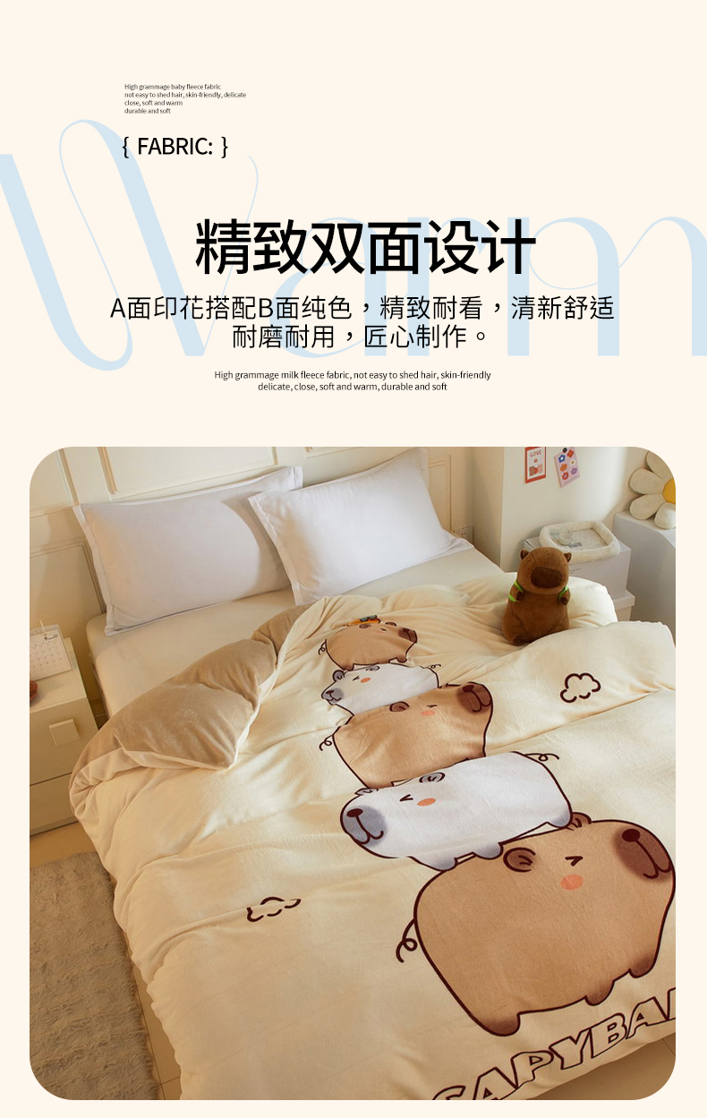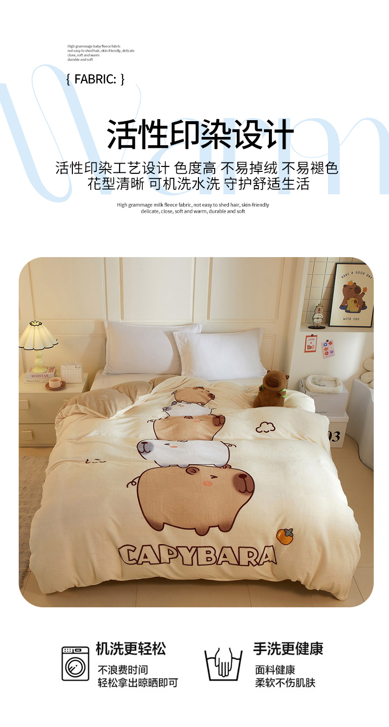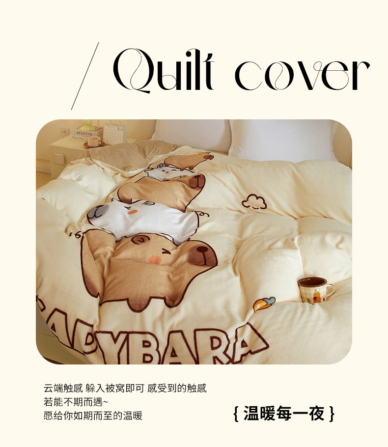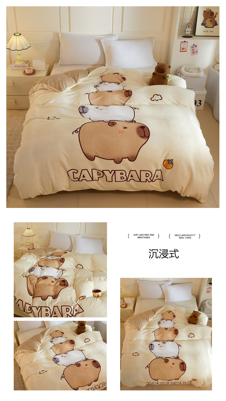 商品名称:蘭菲家纺 2025新款卡皮巴拉牛奶绒单被套 被套单件 沉浸式