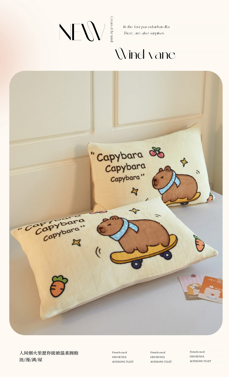 商品名称:(总)蘭菲家纺 2025新款卡皮巴拉牛奶绒单枕套 枕套单件