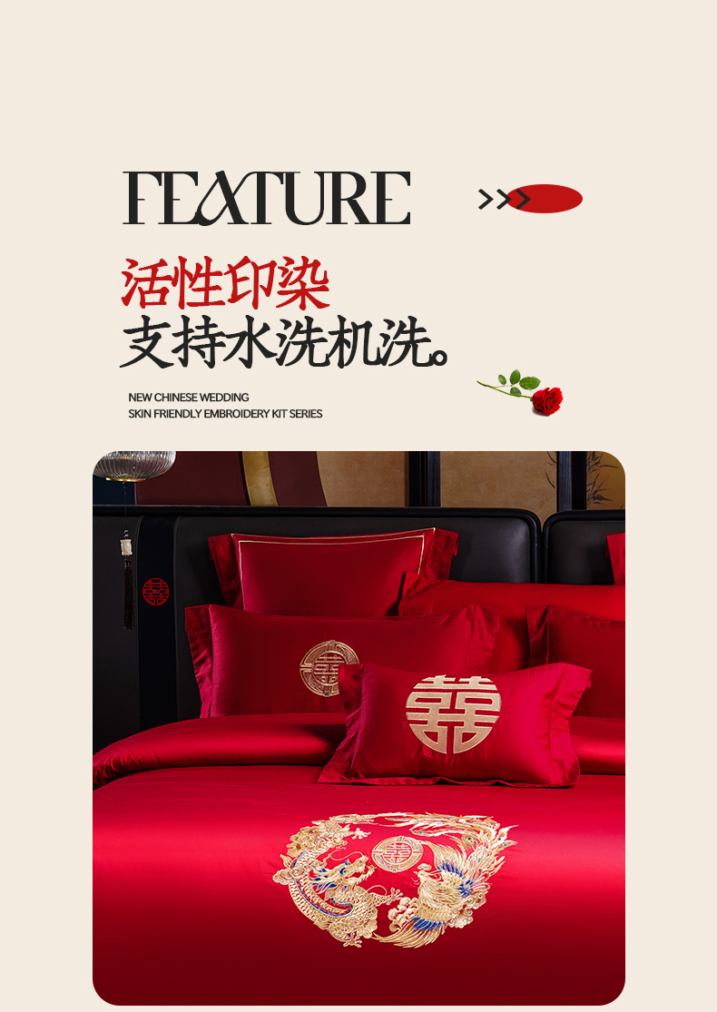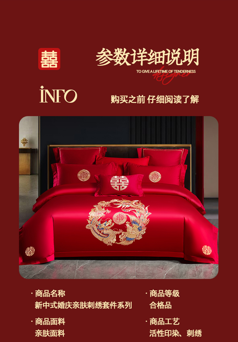 当前位置: 91家纺网 > 商品网购 > 床品套件 > 四件套 > 婚庆四件套 > 置顶家纺 2025新款新中式婚庆亲肤刺绣四件套 龙华凤贵-大红