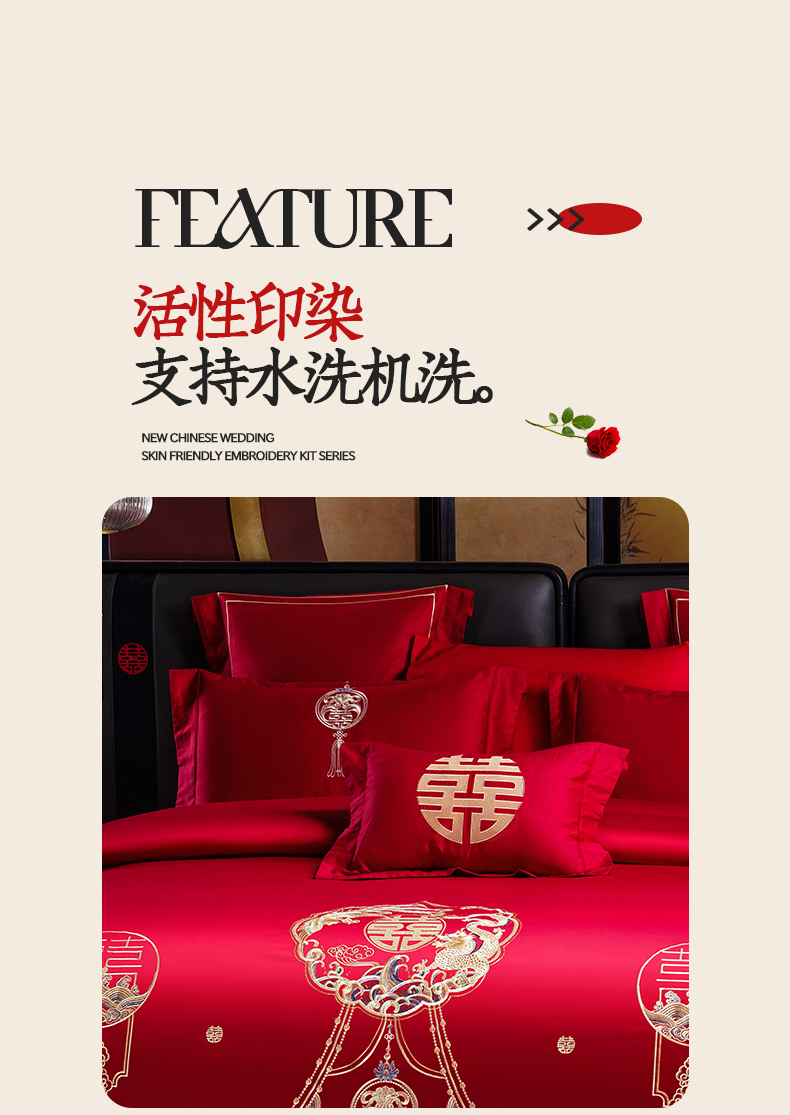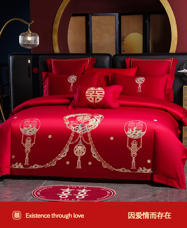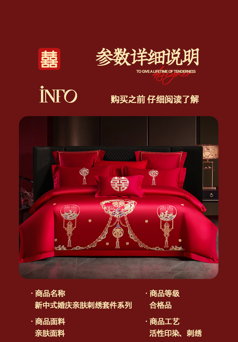 当前位置: 91家纺网 > 商品网购 > 床品套件 > 四件套 > 婚庆四件套 > 置顶家纺 2025新款新中式婚庆亲肤刺绣四件套 招财龙凤-大红