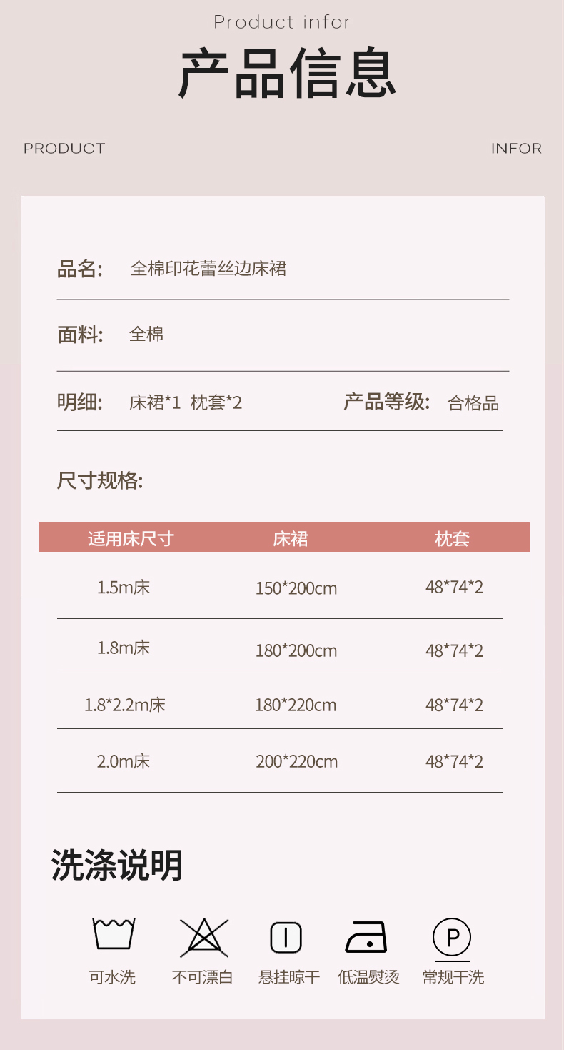180x220cm单床裙+枕套一对 | ¥135.00 |