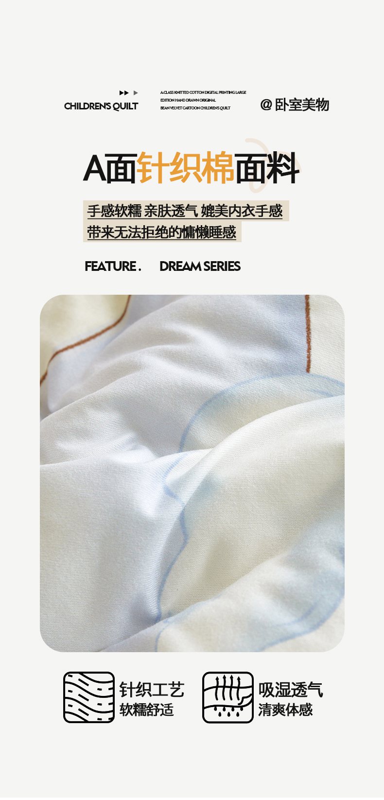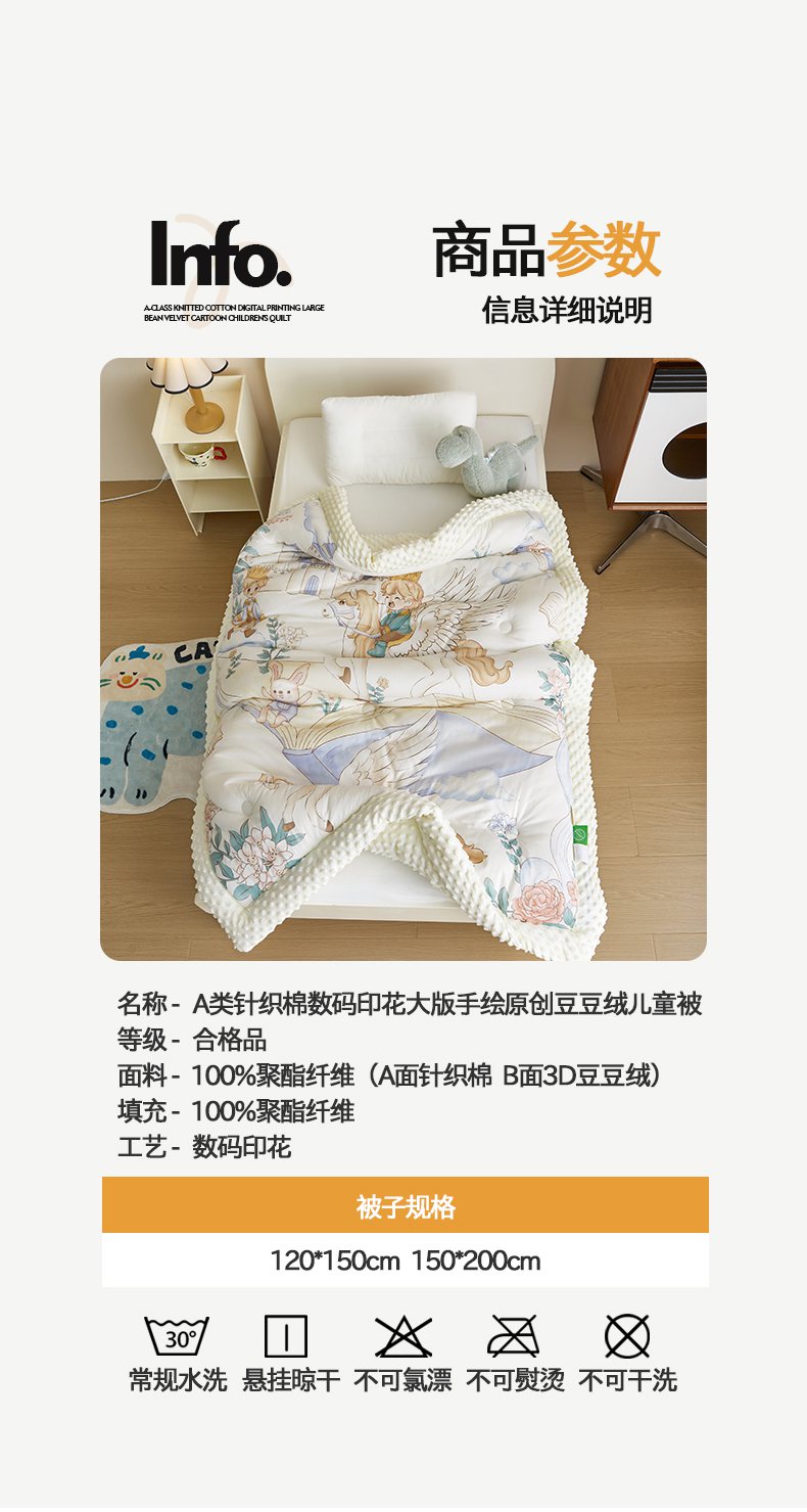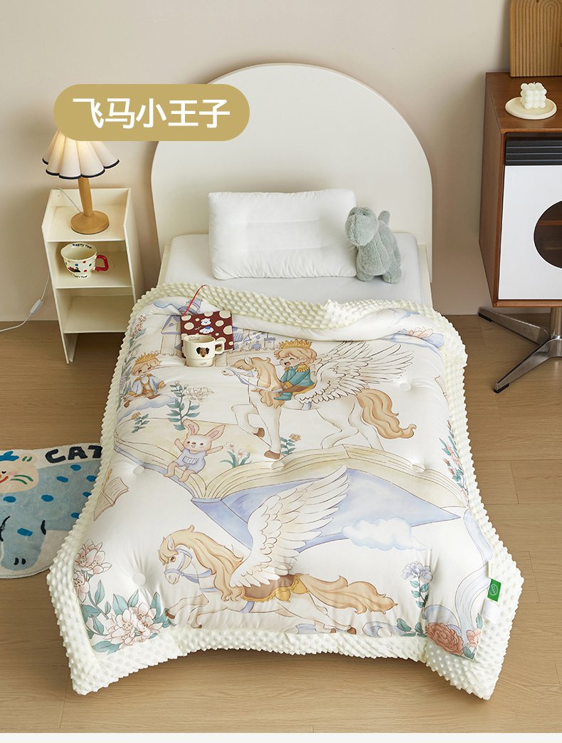 商品名称:荷马之梦 2025新款针织棉数码印花大版手绘原创豆豆绒被芯儿童被子春秋被冬被-梦境系列 梦境-飞马小王子
