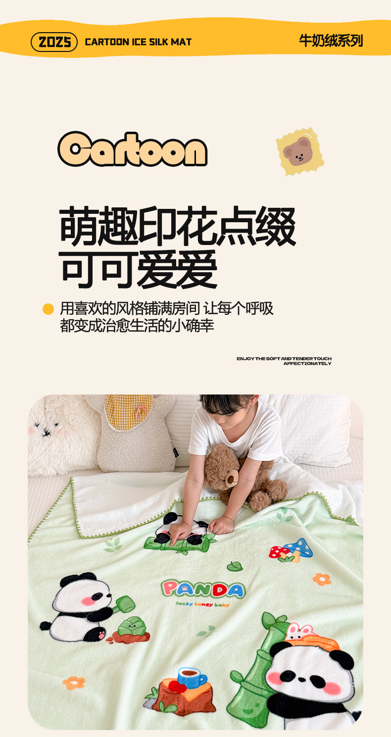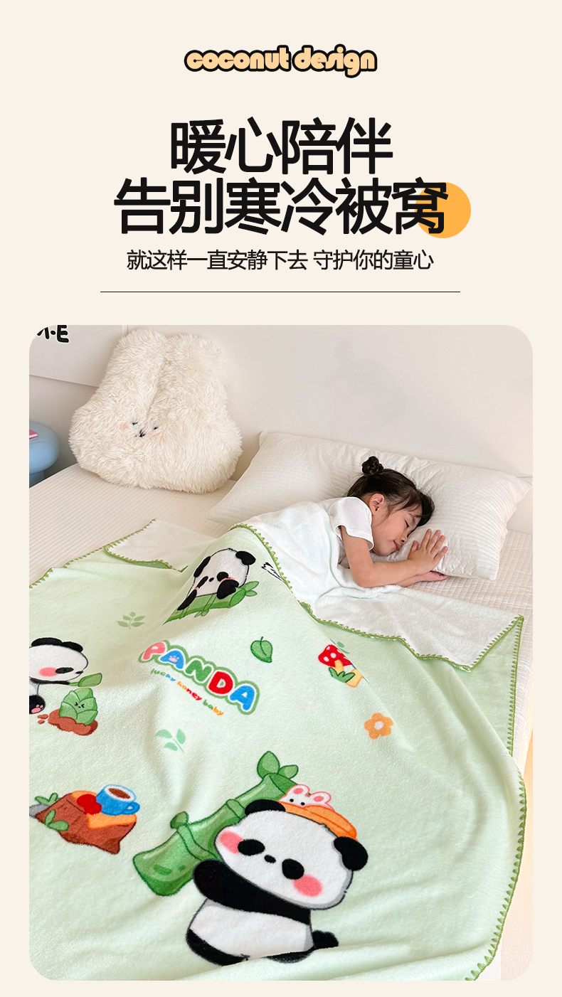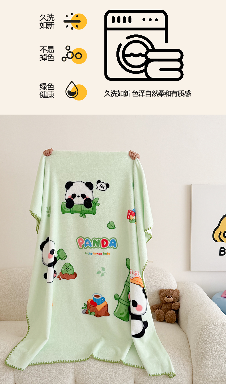 商品名称:嗨生活 2025新款牛奶绒毛毯儿童毛毯幼儿园休闲沙发毯床单推车毯毛毯毯子 熊猫之家