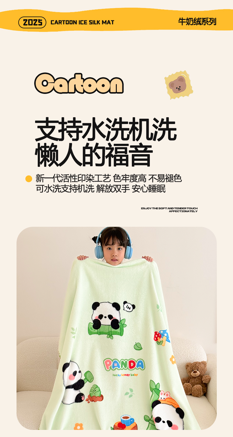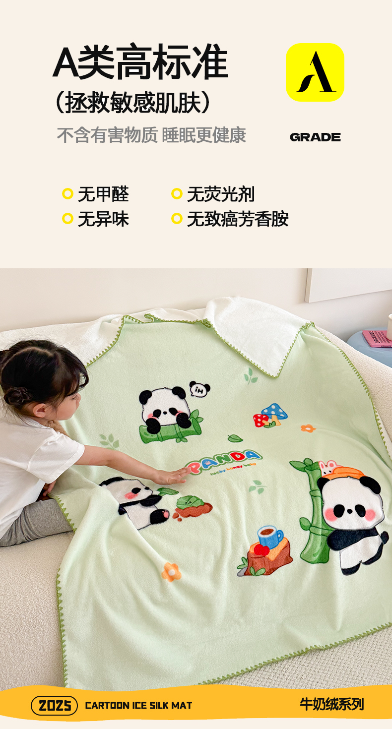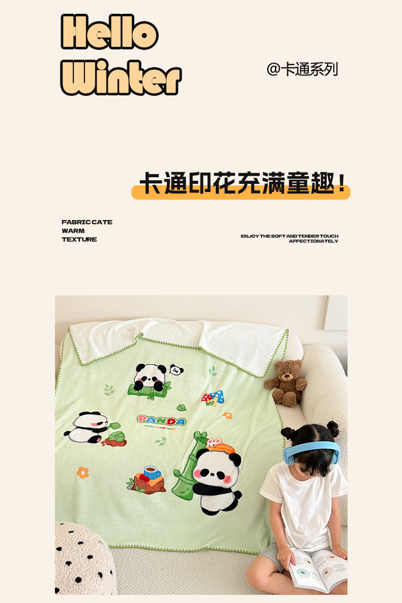 商品名称:嗨生活 2025新款牛奶绒毛毯儿童毛毯幼儿园休闲沙发毯床单推车毯毛毯毯子 熊猫之家