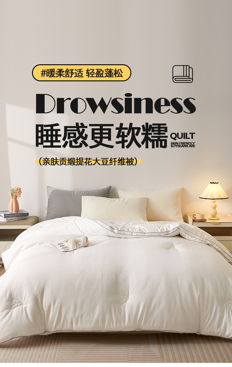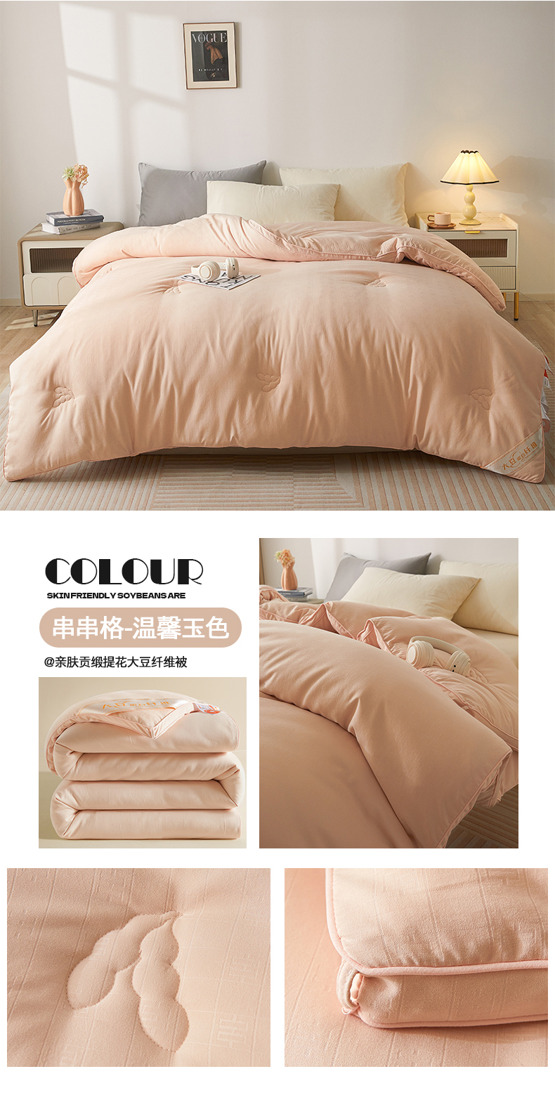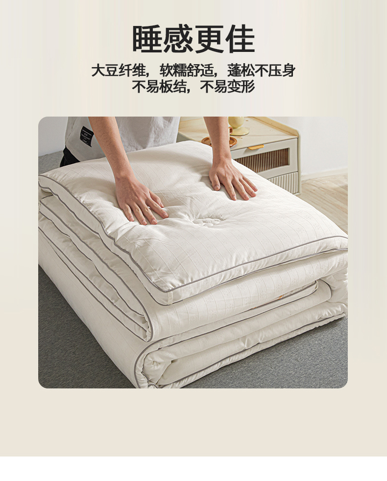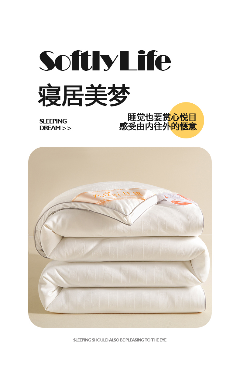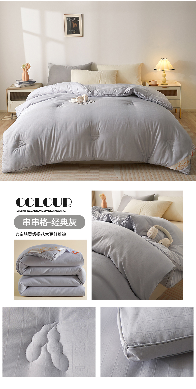• 91家纺网 家纺一手货源 找家纺 置顶家纺 2024新款贡缎提花大豆纤维被子被芯--棚拍图 串串格-大气白色