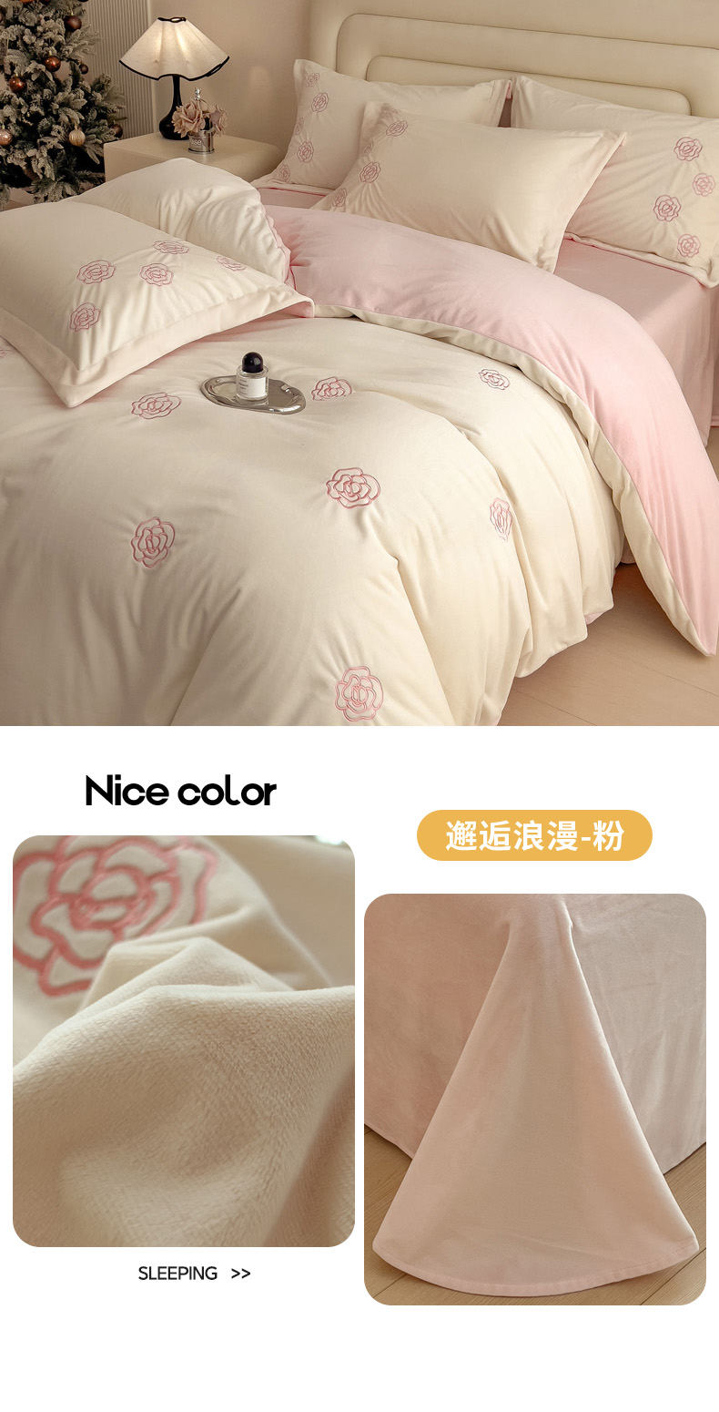 当前位置: 91家纺网 > 商品网购 > 床品套件 > 四件套 > 牛奶绒四件套 > (总)席世家 2025新款A类全工艺230克婴儿绒绣花四件套-邂逅浪漫