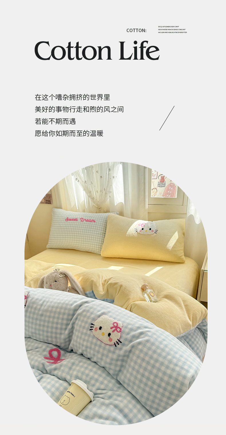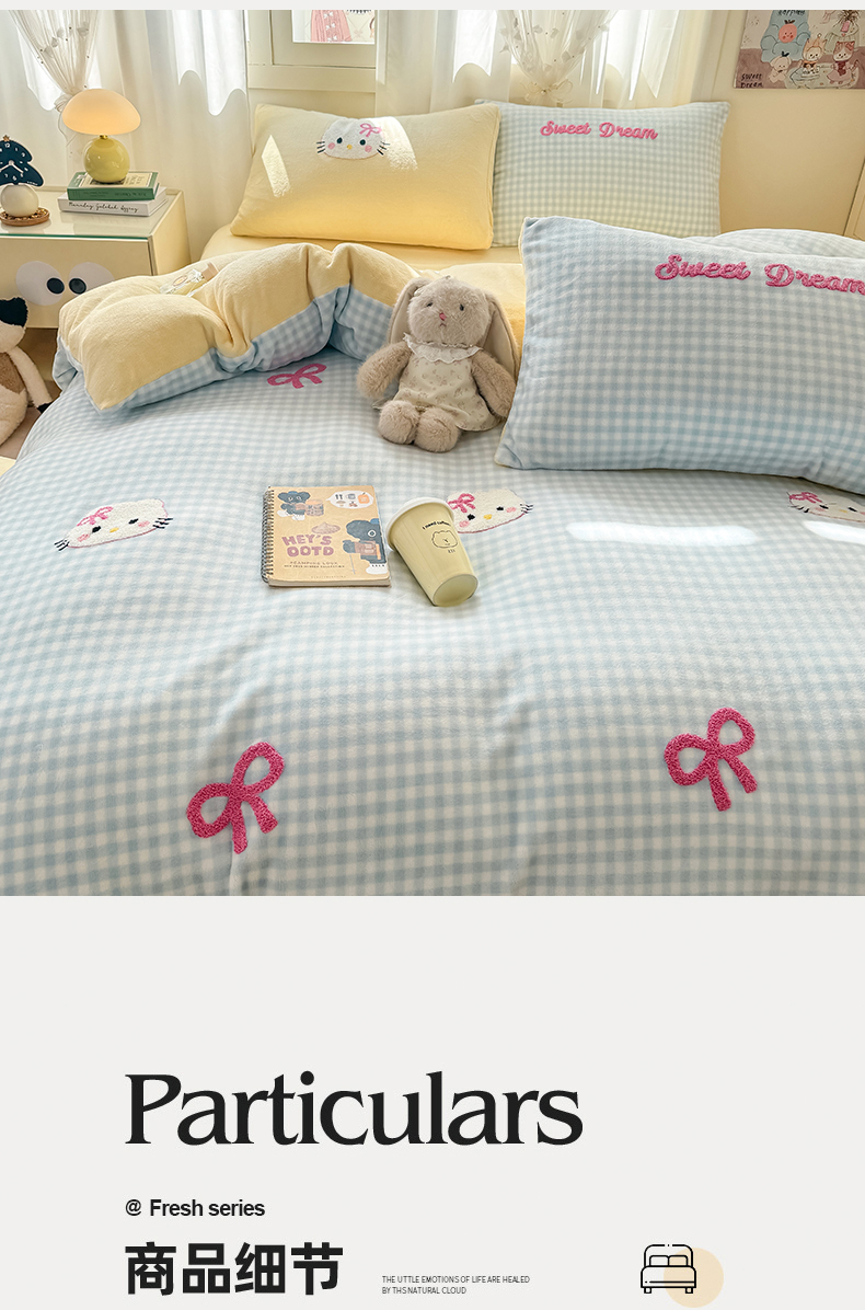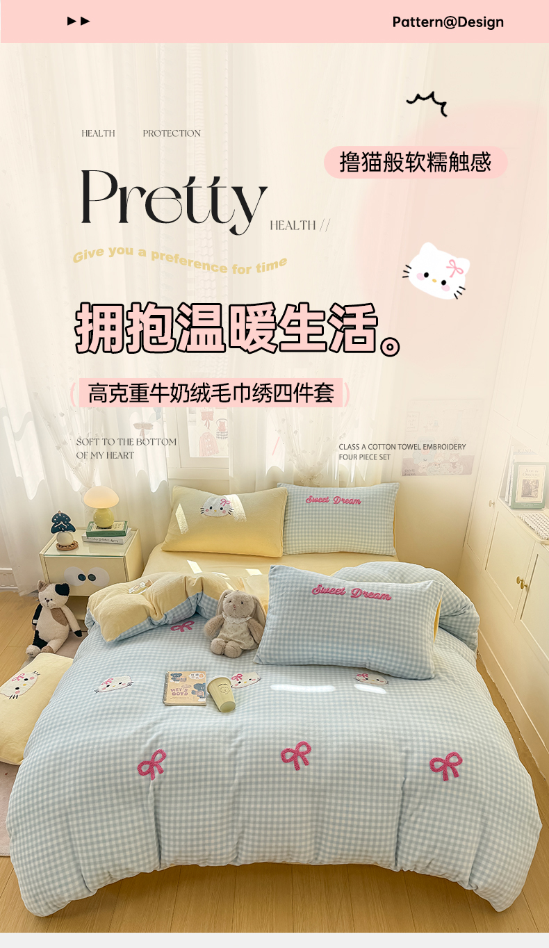 当前位置: 91家纺网 > 商品网购 > 床品套件 > 四件套 > 牛奶绒四件套 > 灰鲸 2025新款牛奶绒毛巾绣套件-猫咪蝴蝶结 猫咪蝴蝶结-蓝格+奶油黄