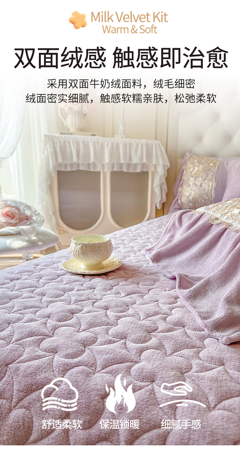 网红馆(ck家纺) 2025新款牛奶绒蕾丝花边倾城系列单床盖 倾城-紫