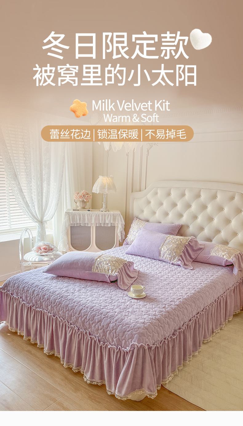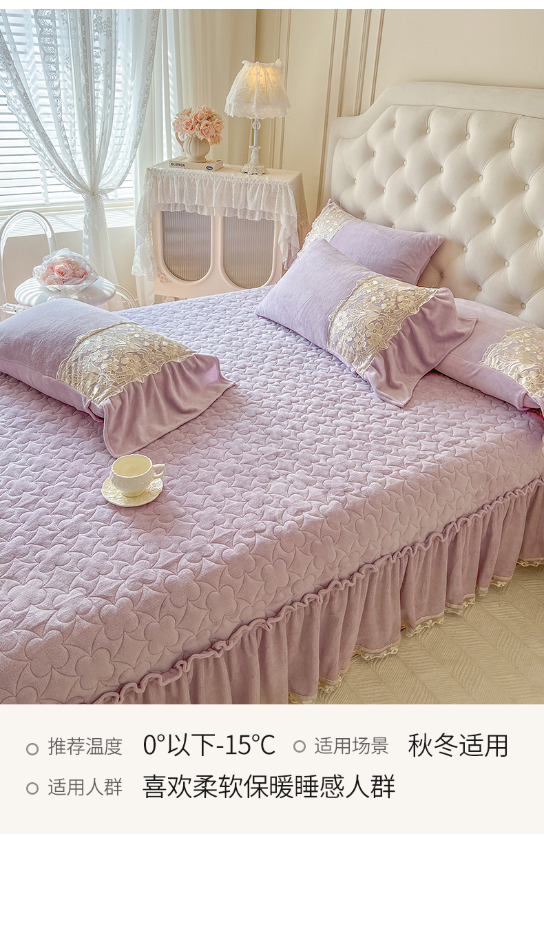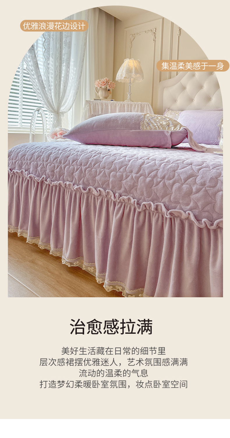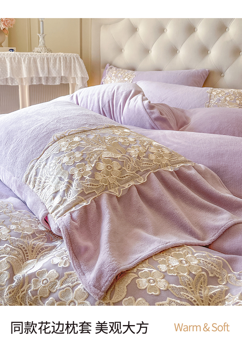 商品名称:网红馆(ck家纺) 2025新款牛奶绒蕾丝花边倾城系列单床盖 倾城-紫