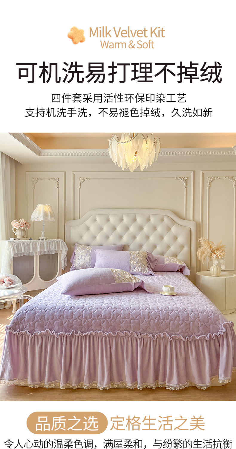(总)网红馆(ck家纺) 2025新款亲肤舒适牛奶绒蕾丝边床裙四件套-秘密花园,秘密花园-粉色,秘密花园-卡其,秘密花园-米色,秘密花园-紫色