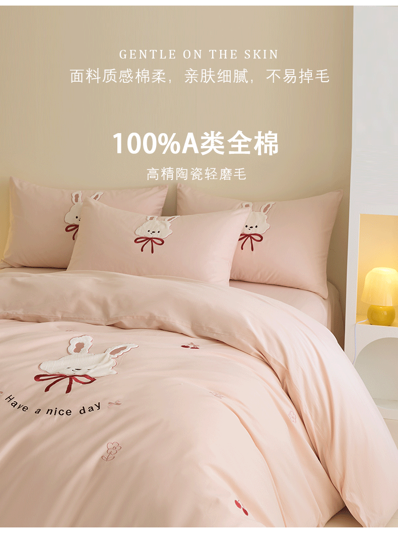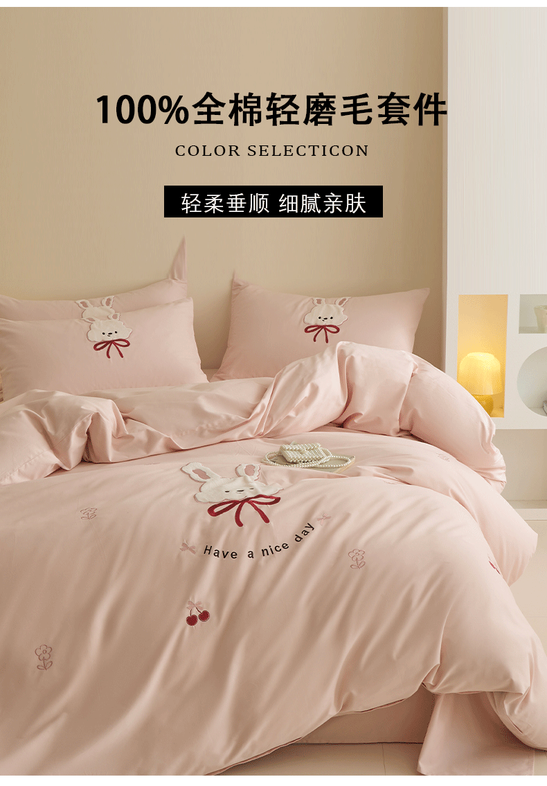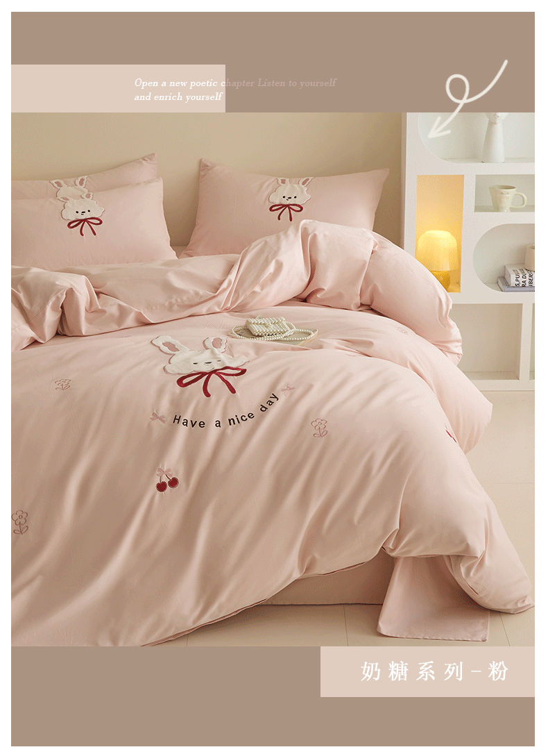 当前位置: 91家纺网 > 商品网购 > 床品套件 > 四件套 > 全棉普通四件套 > 618家纺 2025新款50S100支全棉纯棉磨毛奶糖系列四件套 奶糖-粉