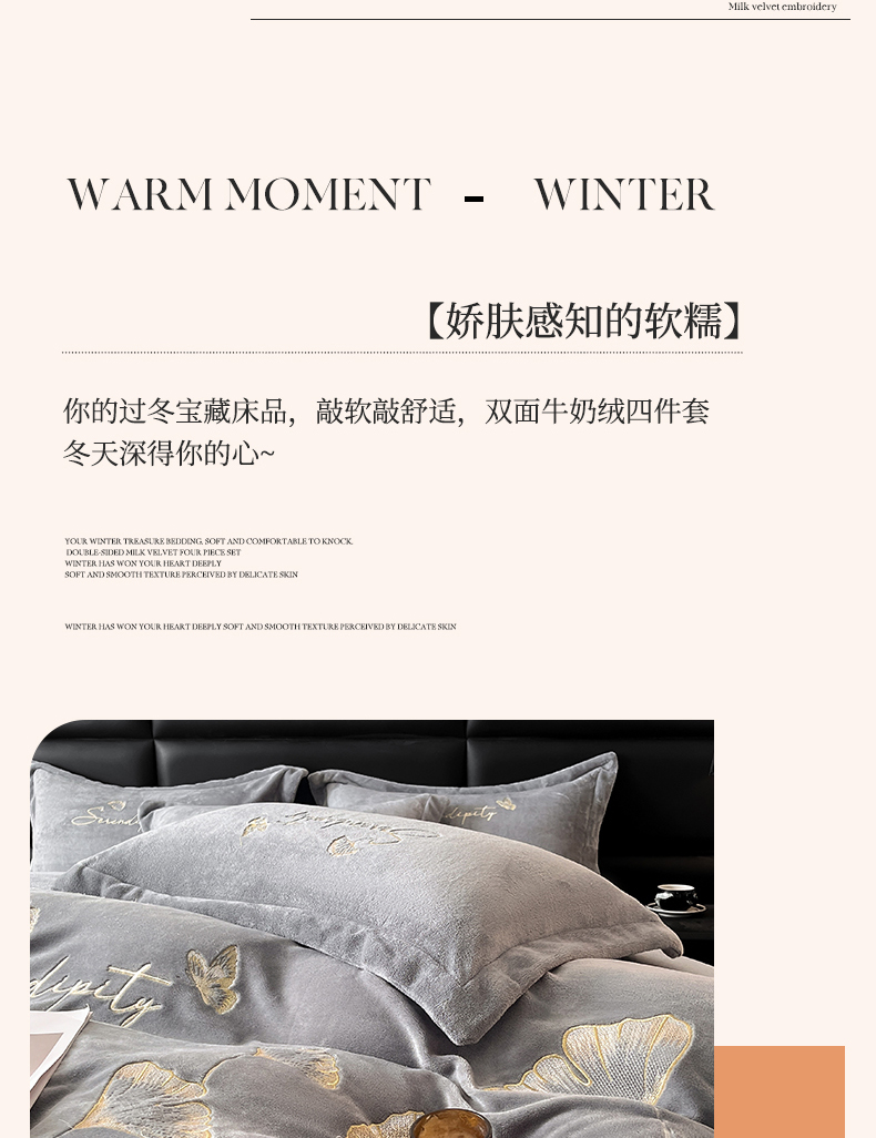 当前位置: 91家纺网 > 商品网购 > 床品套件 > 四件套 > 牛奶绒四件套 > (总)苏源家居 2025新款冬季轻奢风刺绣牛奶绒四件套-永恒