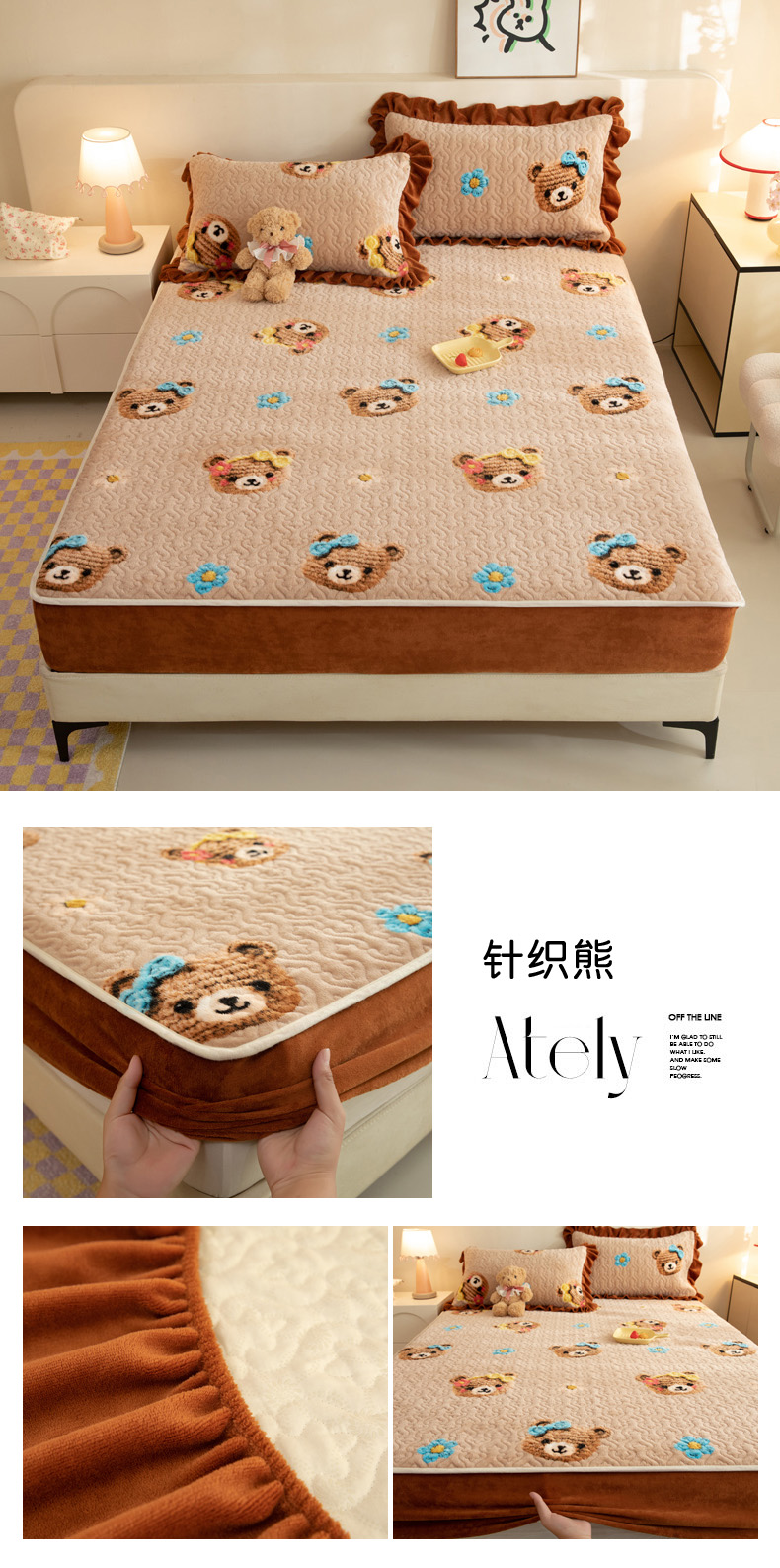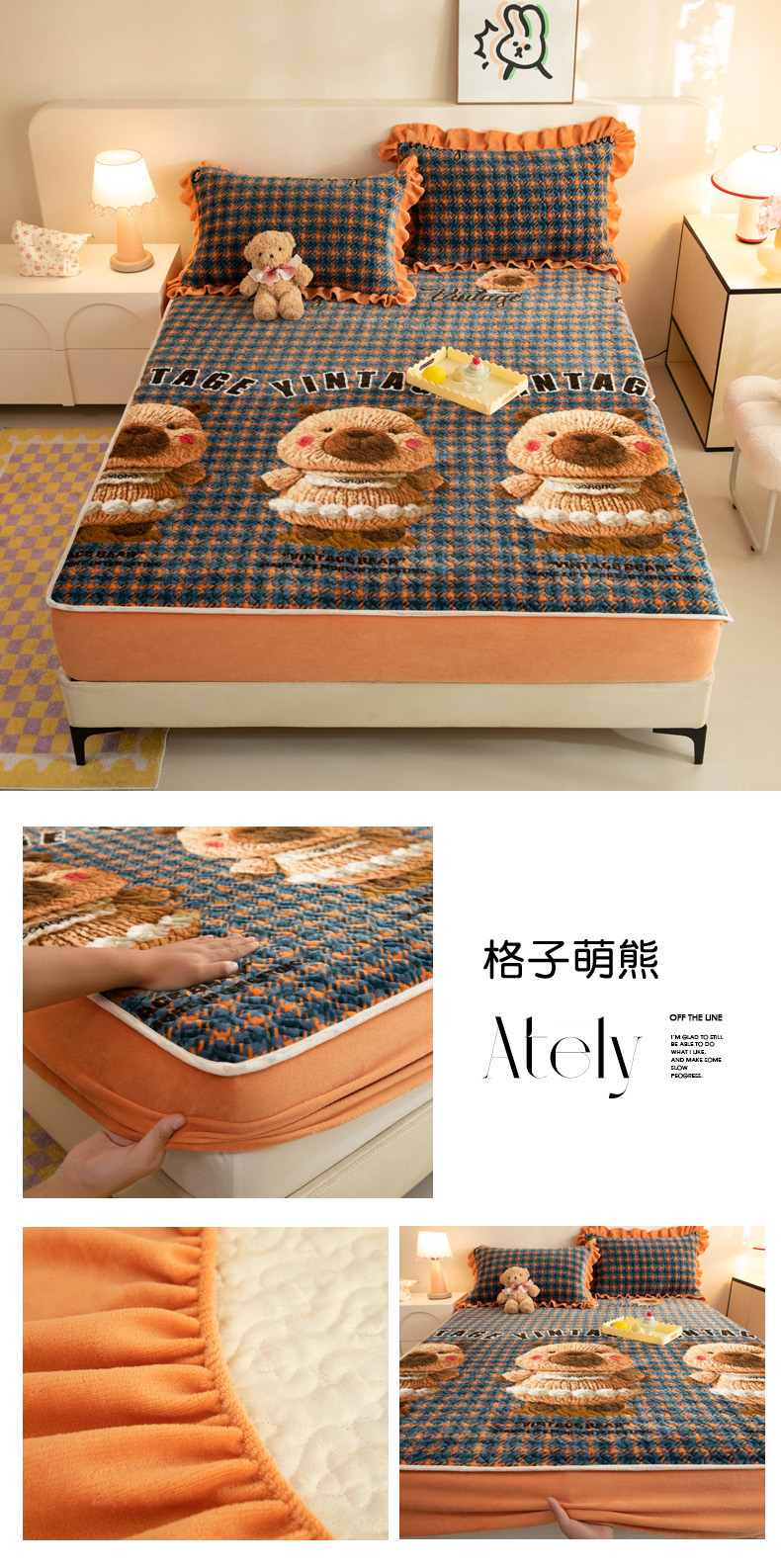 (总)美达家纺 2025新款高克重牛奶绒花边款夹棉床盖三件套,巴拉巴拉,格子萌熊,恐龙星球,梦蝶,时来运转,甜蜜奶吧,微笑熊,针织熊