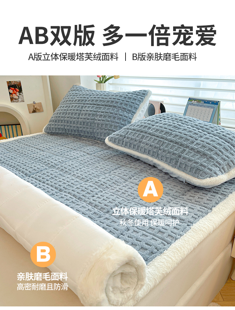 予梦家纺 2025新款加厚塔芙绒床垫床褥床护垫(带卖点图和买家秀) 华夫格 苍蓝