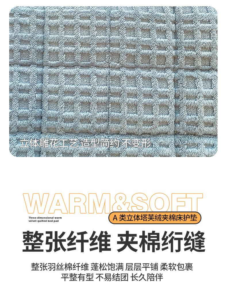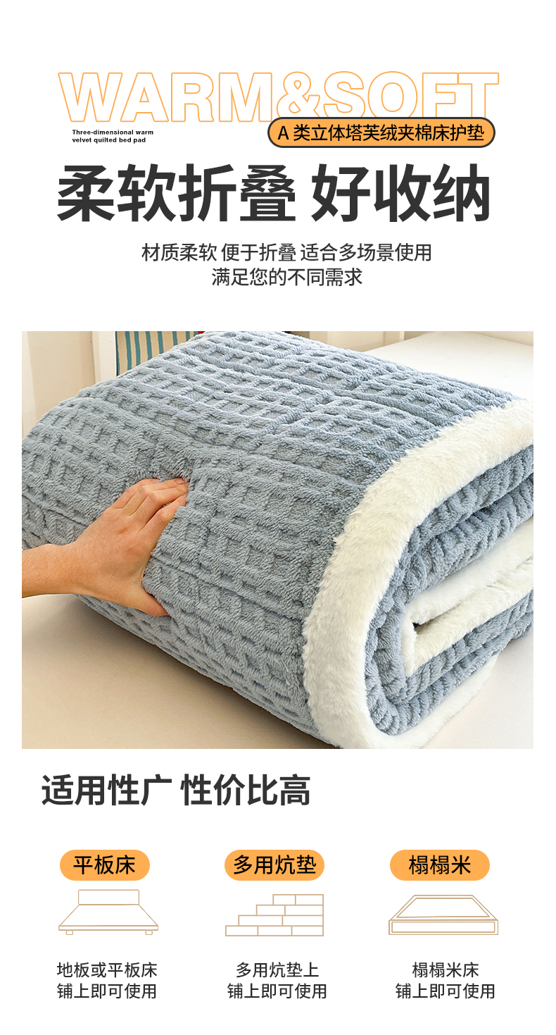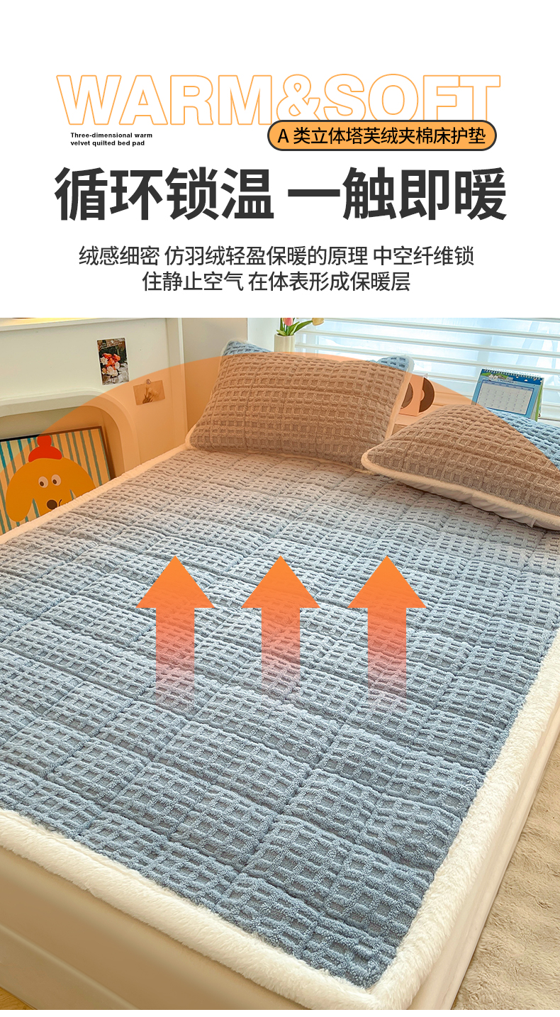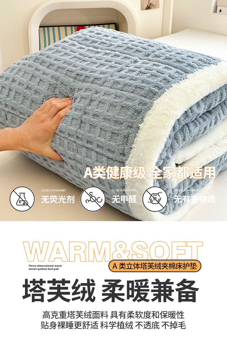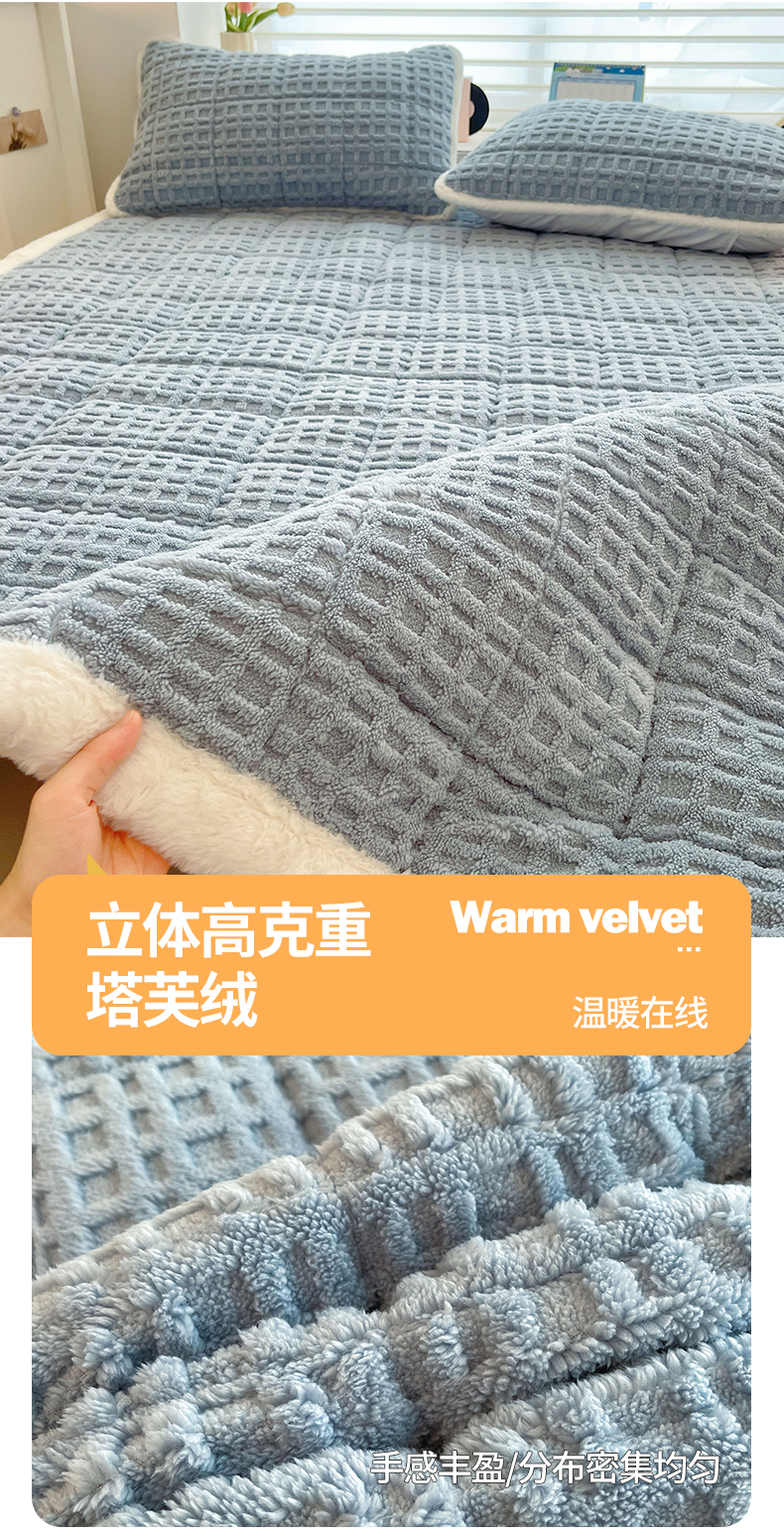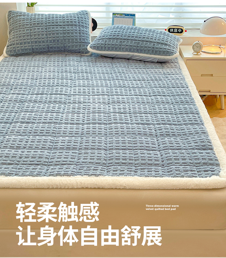 商品名称:予梦家纺 2025新款加厚塔芙绒床垫床褥床护垫(带卖点图和买家秀) 华夫格 苍蓝