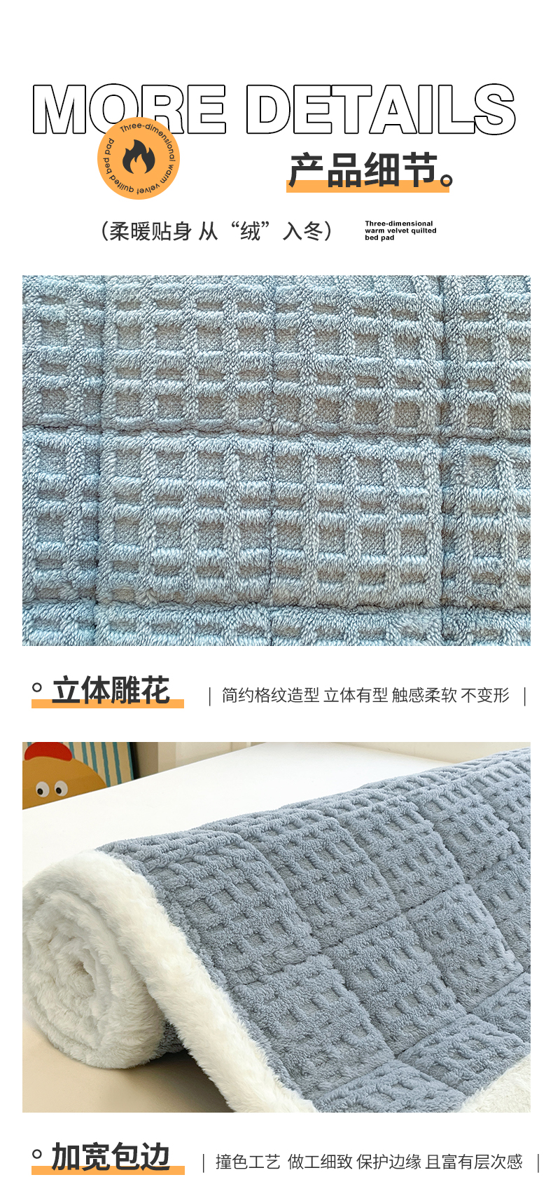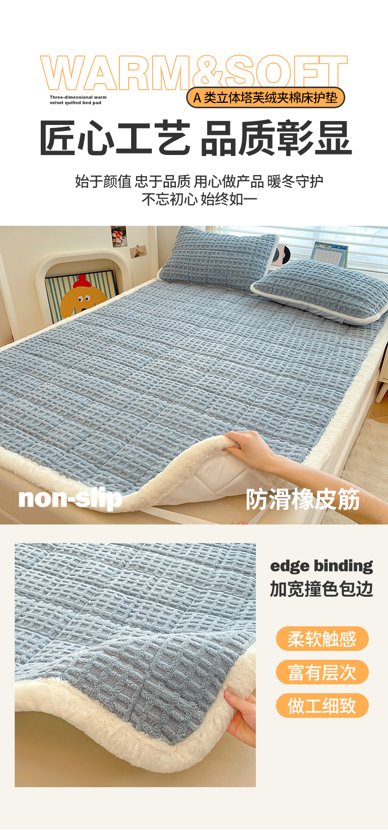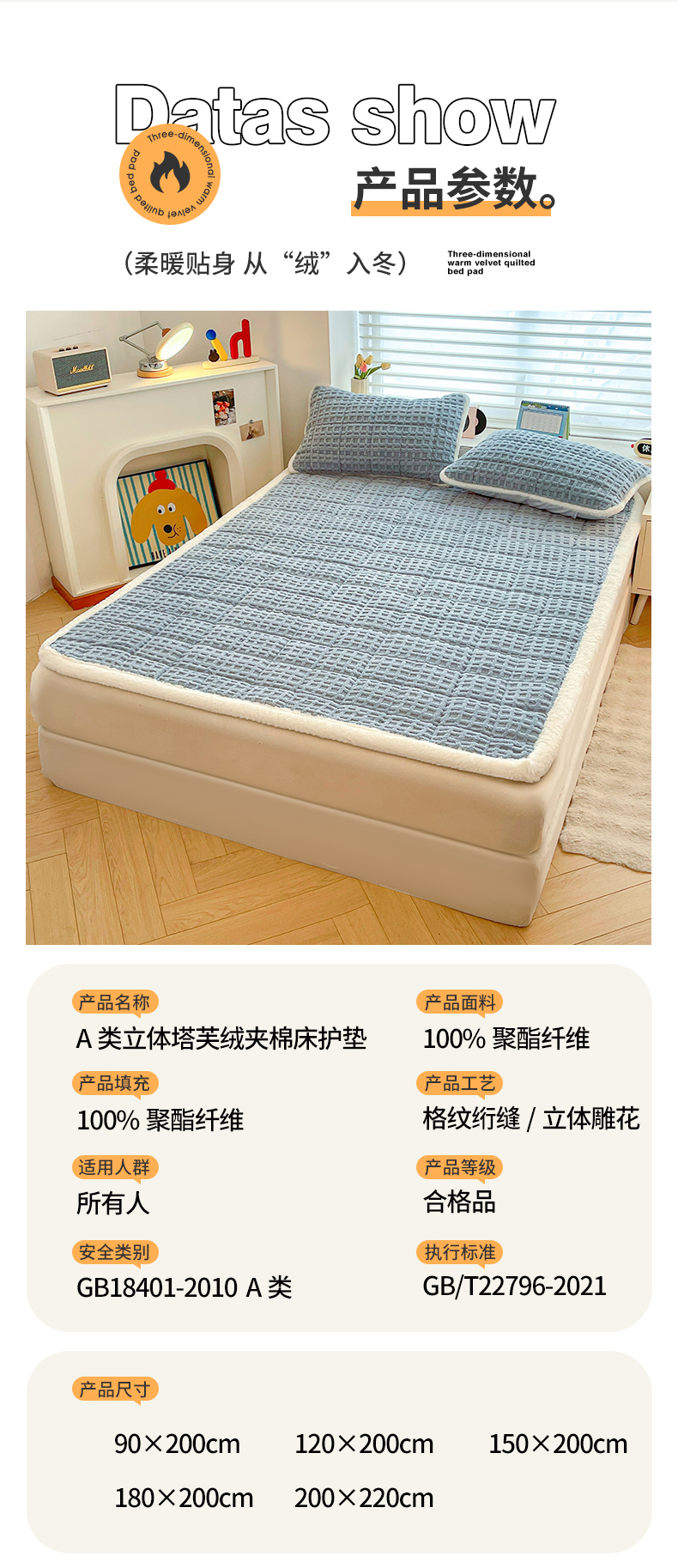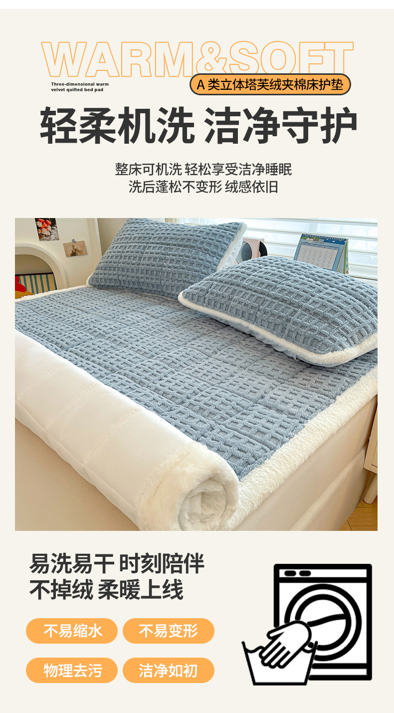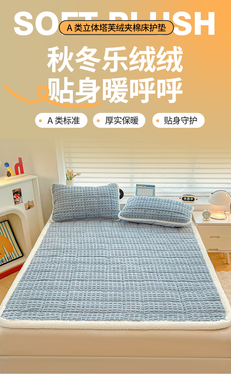 商品名称:予梦家纺 2025新款加厚塔芙绒床垫床褥床护垫(带卖点图和买家秀) 华夫格 苍蓝