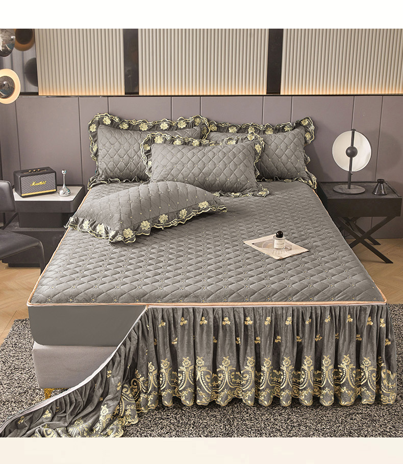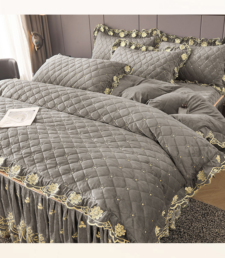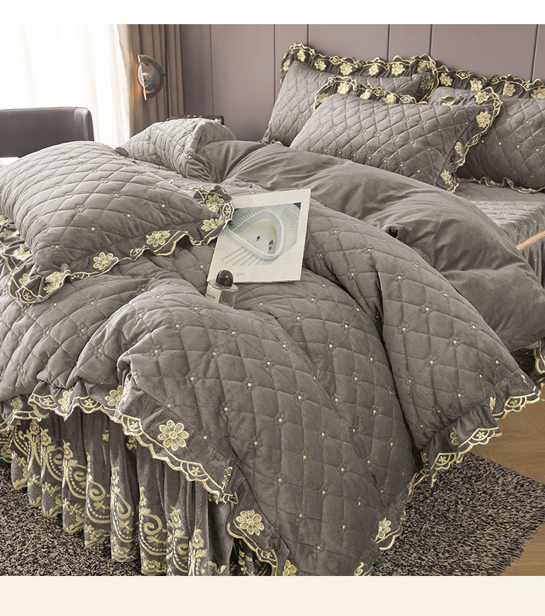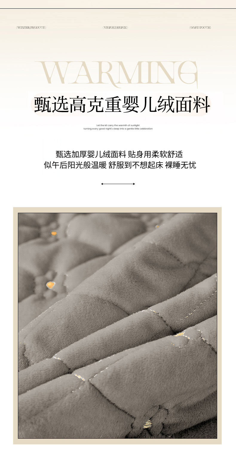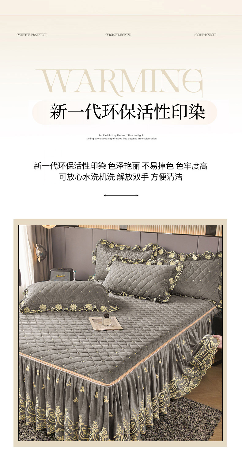 当前位置: 91家纺网 > 商品网购 > 床品套件 > 四件套 > 其它四件套 > 罗艺轩 2025新款婴儿绒加厚保暖床裙式四件套-心语 心语-高级灰