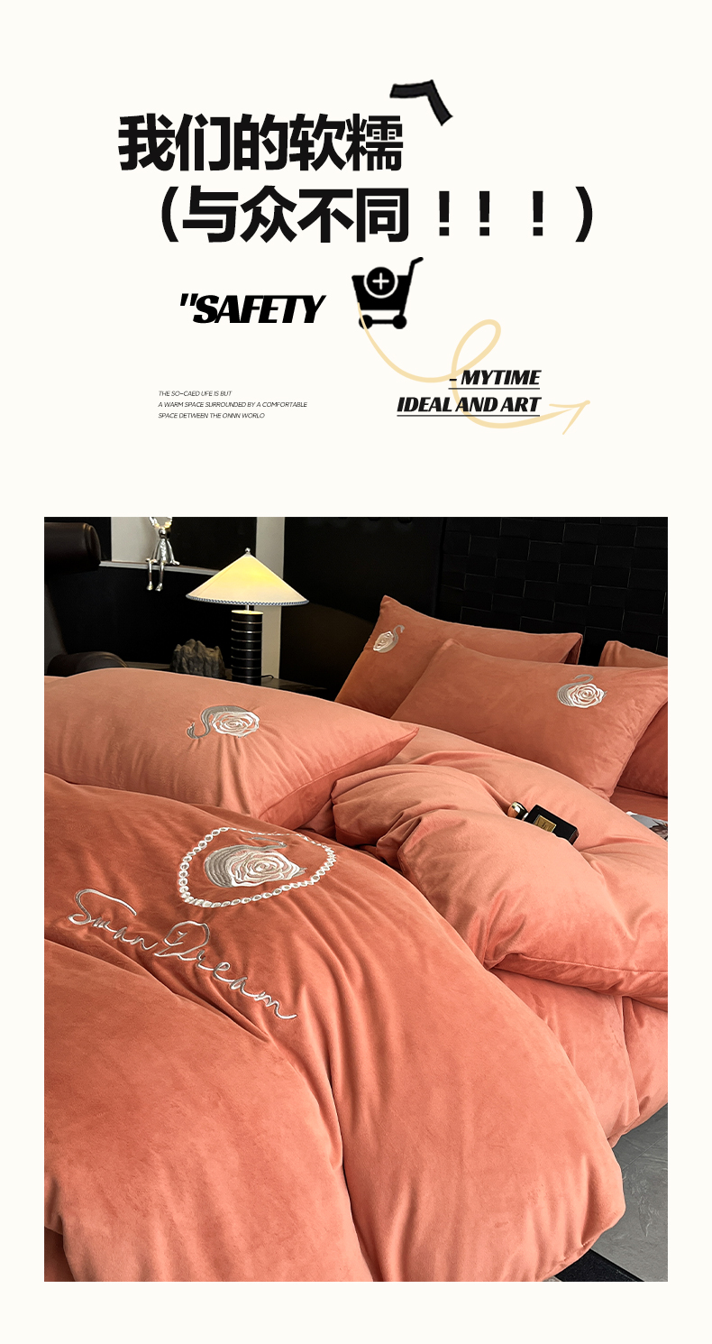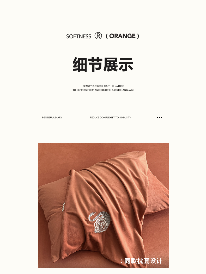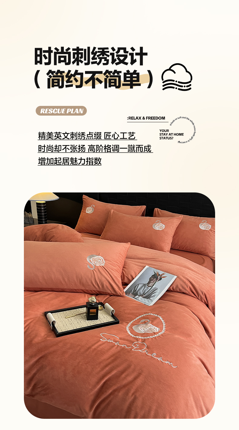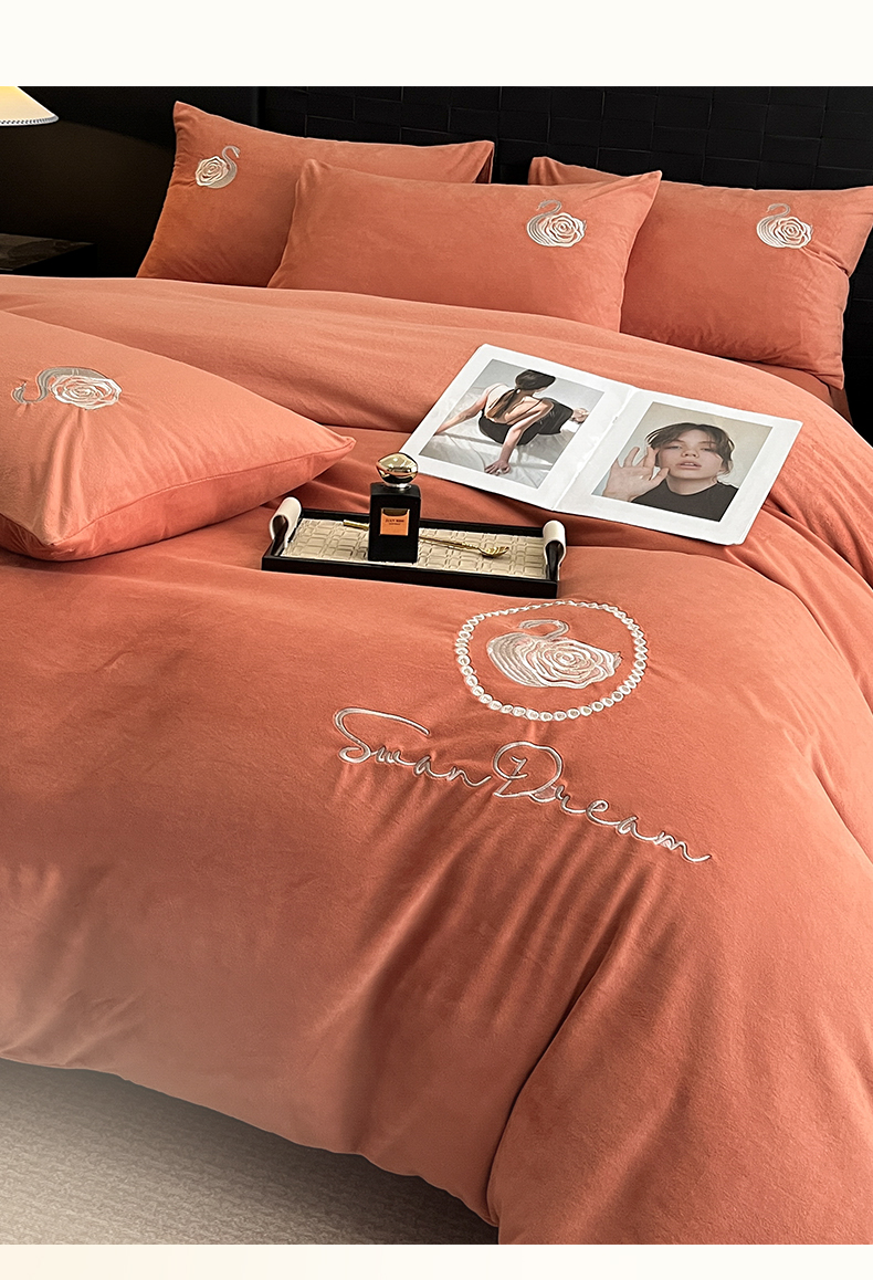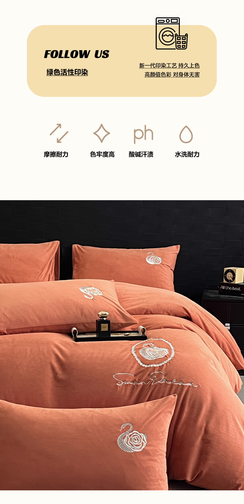 商品名称:如一 2025新款水晶绒刺绣天鹅系列四件套 天鹅-魅力橙