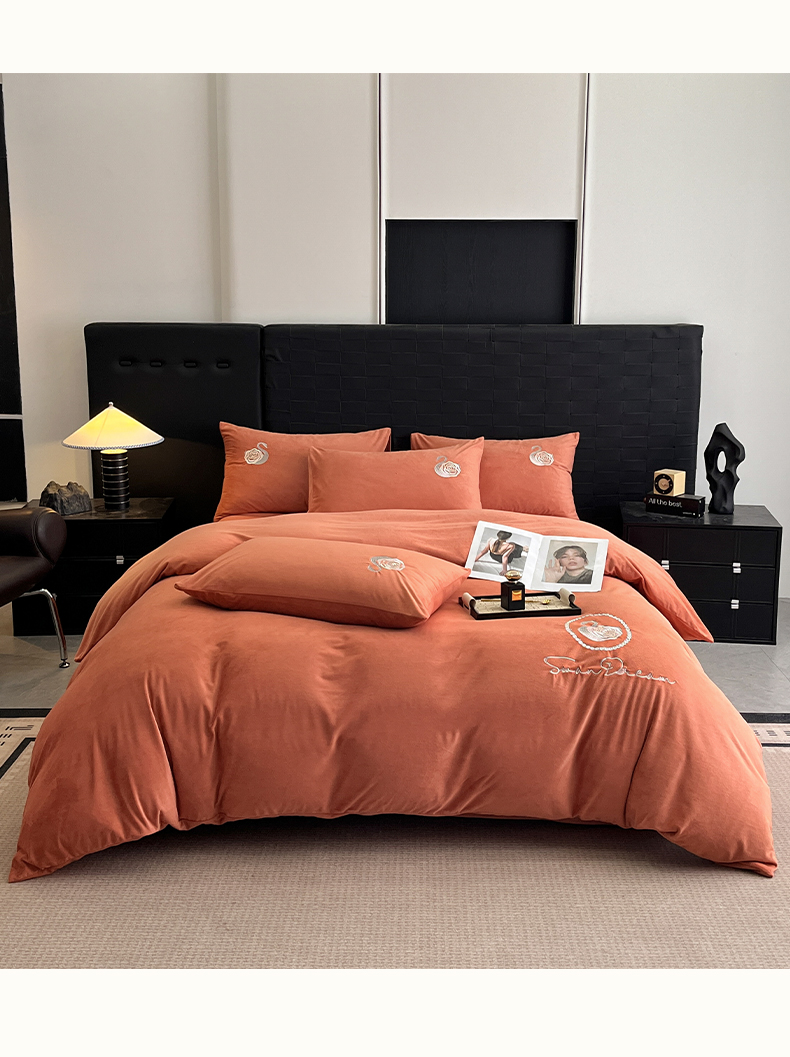 如一 2025新款水晶绒刺绣天鹅系列四件套 天鹅-魅力橙