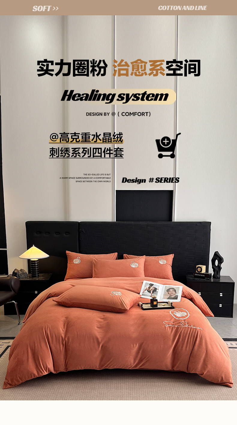 (总)如一 2025新款水晶绒刺绣天鹅系列四件套,天鹅-宾利蓝,天鹅-梵星兰,天鹅-高级灰,天鹅-魅力橙,天鹅-奶昔白,天鹅-浅豆沙,天鹅-星辰银