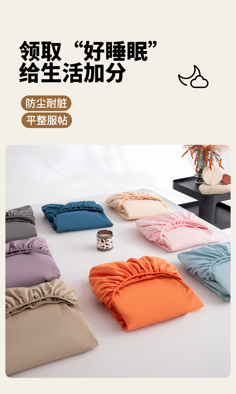 (总)寝柔家纺 2025新款60S纯色长绒棉磨毛素色四件套床单床笠款,杏驼,魅力紫,奶霜黄,暖橙,少女粉,水波兰,碳木灰,午夜蓝