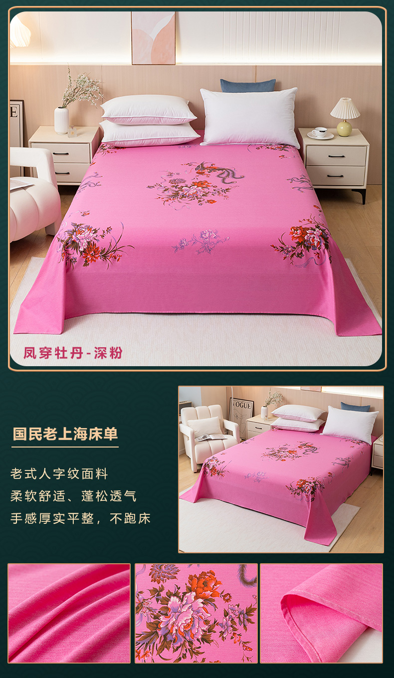 (总)居美良品 2025新款100%全棉纯棉国民老上海床单-牡丹飞燕,牡丹飞燕-淡玉,牡丹飞燕-米白,牡丹飞燕-抹茶绿,牡丹飞燕-浅粉,牡丹飞燕-天蓝,牡丹飞燕-紫色,组合图仅供展示不可下单
