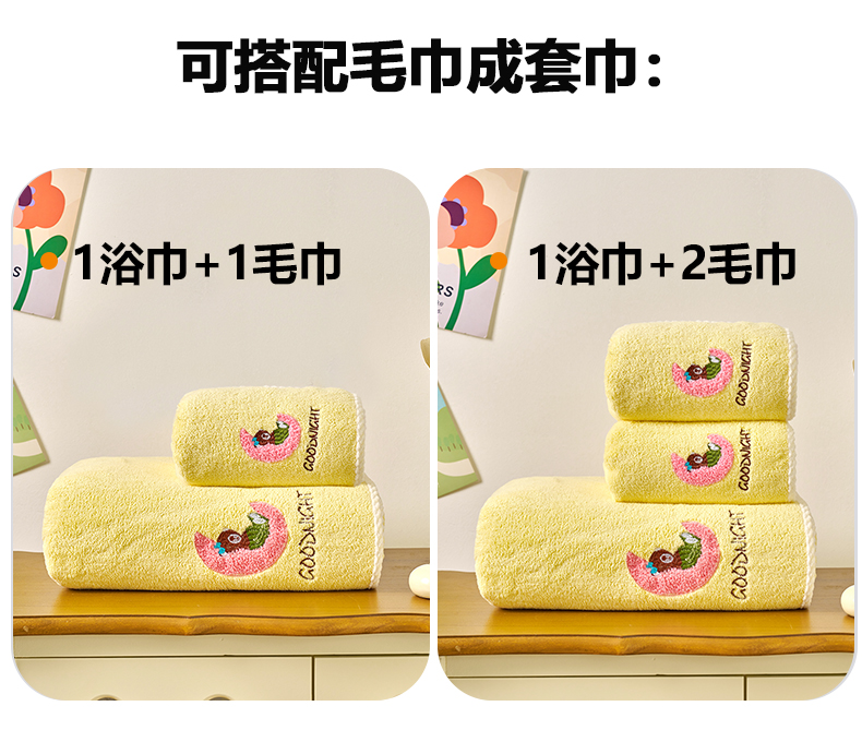 当前位置: 91家纺网 > 商品网购 > 居家日用 > 毛巾/浴巾/浴袍 > 浴巾 > 棠薇家纺 2025新款强吸水浴巾超细纤维速干浴巾加厚浴巾套巾擦身-月亮熊 月亮熊黄 毛巾75*35浴巾140*701浴巾+2毛巾