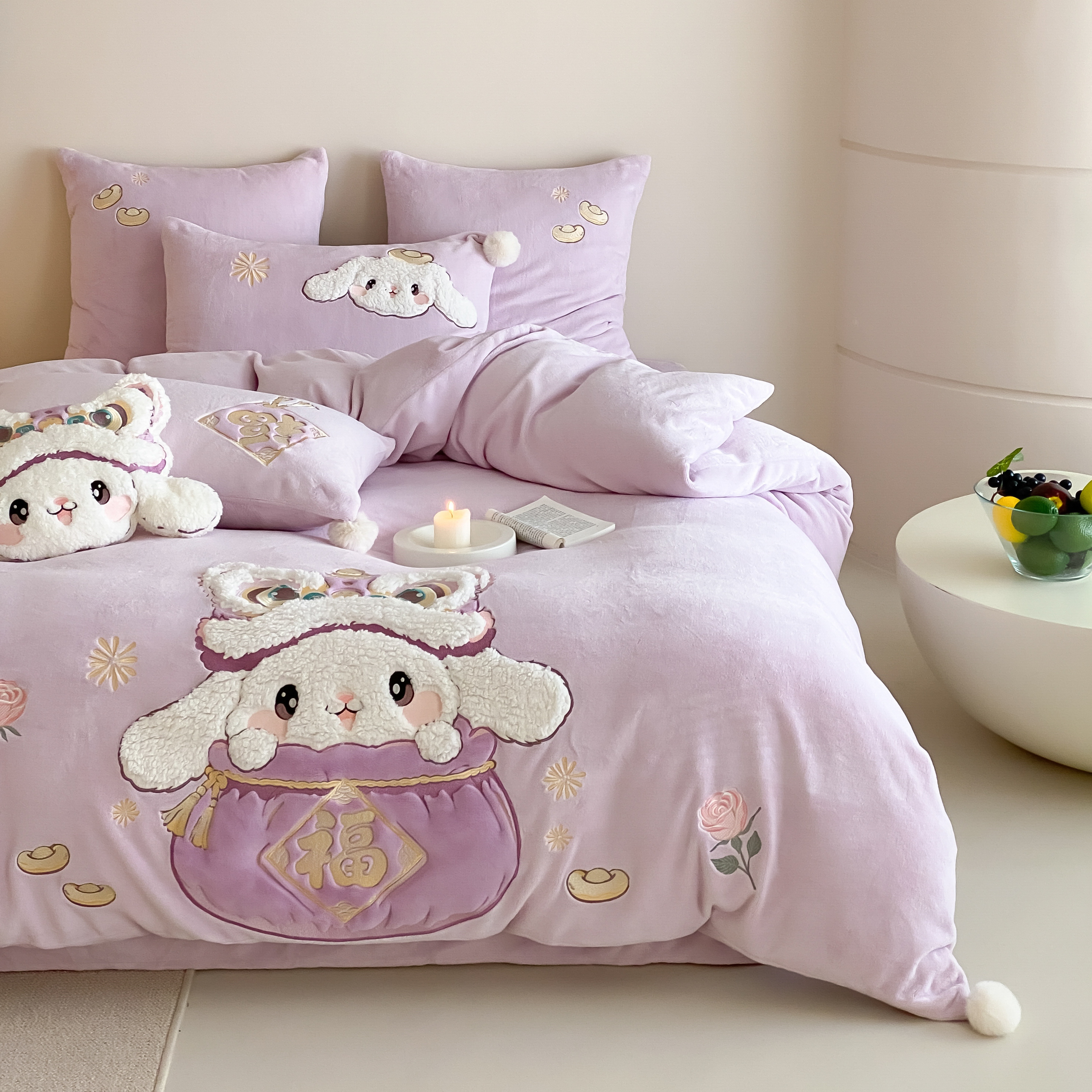 商品名称:(总)MIU缪家居 2025新款秋冬牛奶绒四件套福气满满