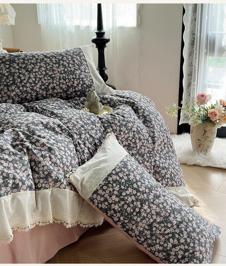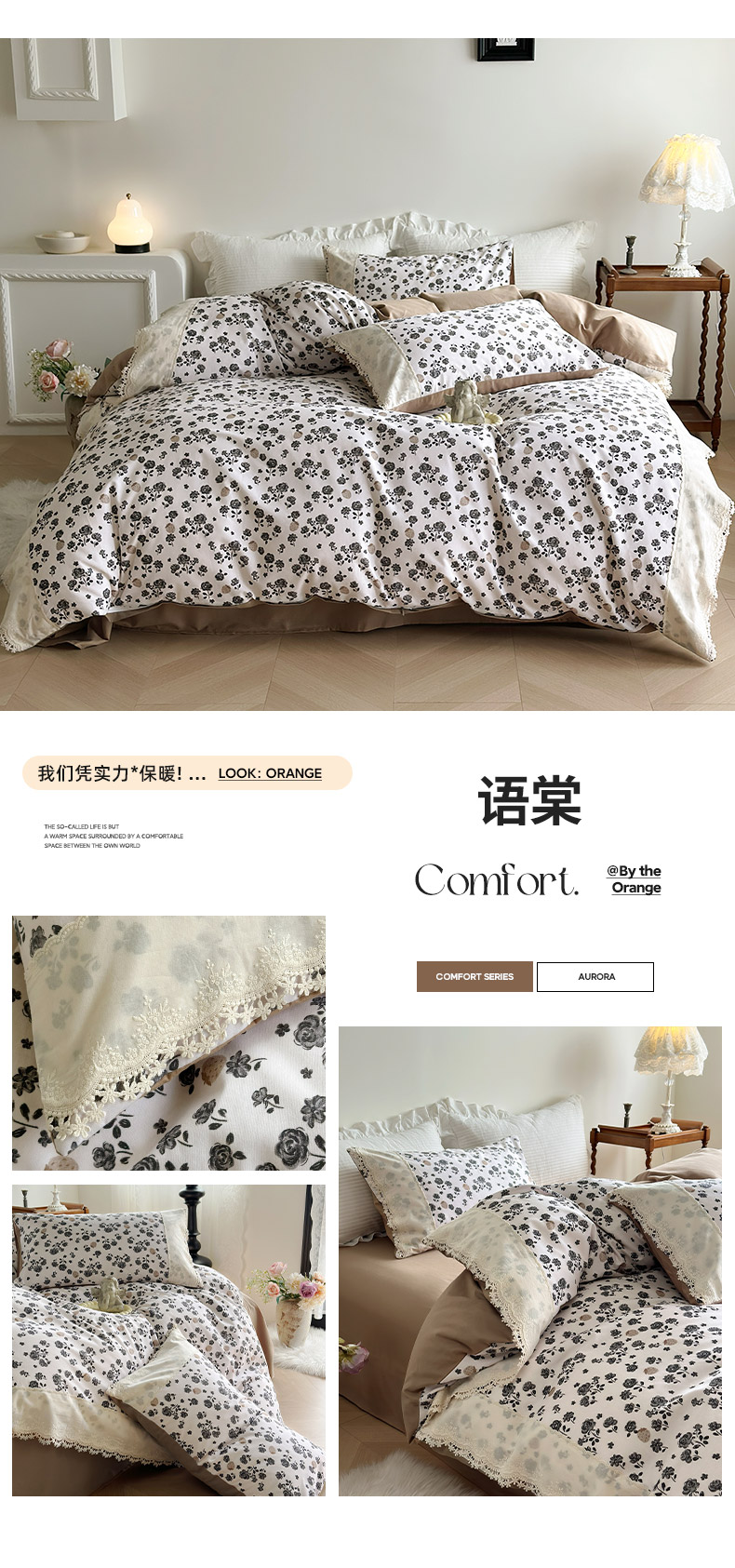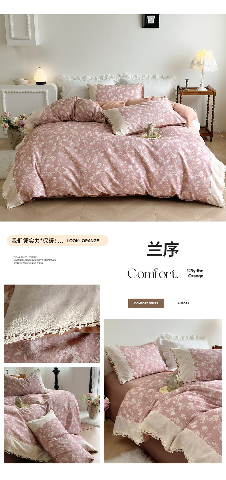 当前位置: 91家纺网 > 商品网购 > 床品套件 > 四件套 > 全棉普通四件套 > 怡家居 2025新款全棉纯棉磨毛数码印花韩系花边四件套 茵然