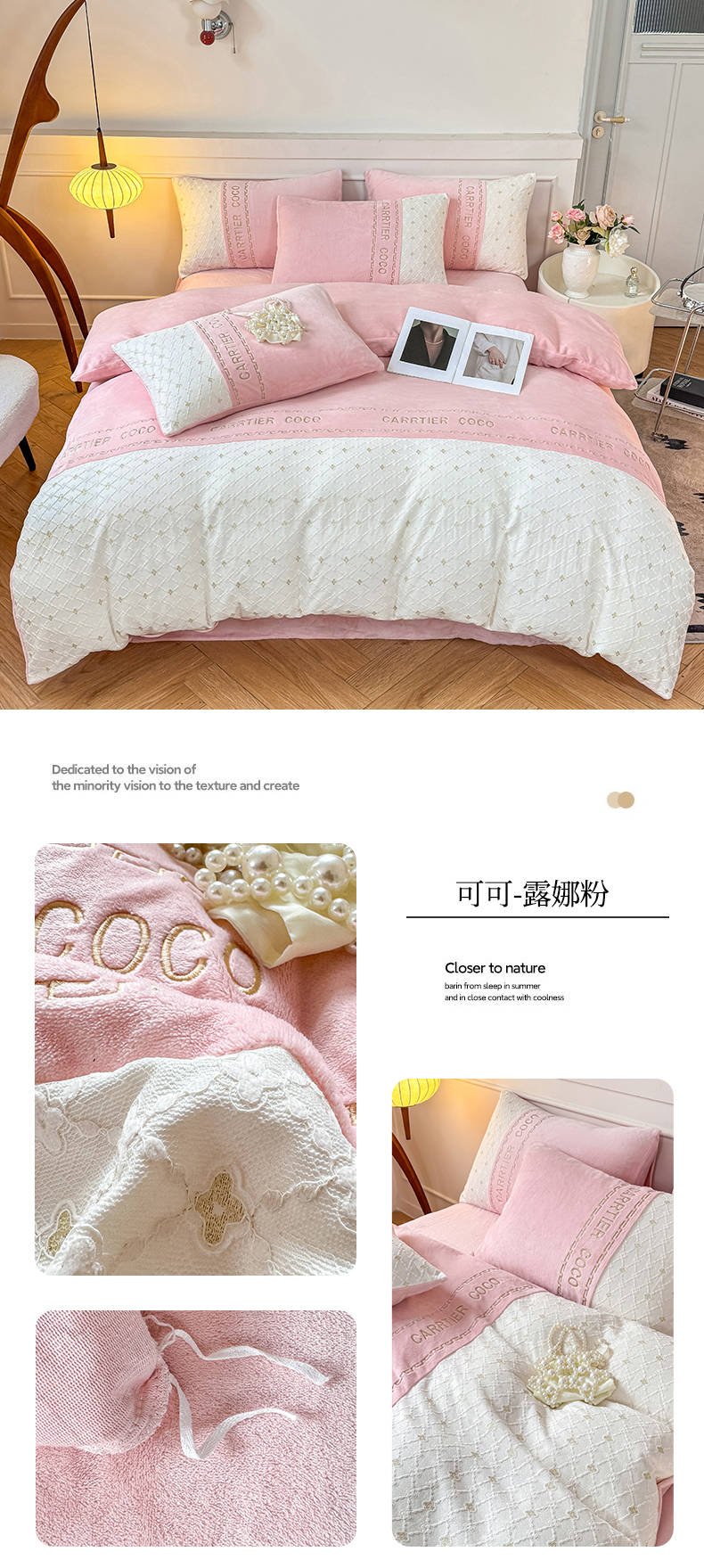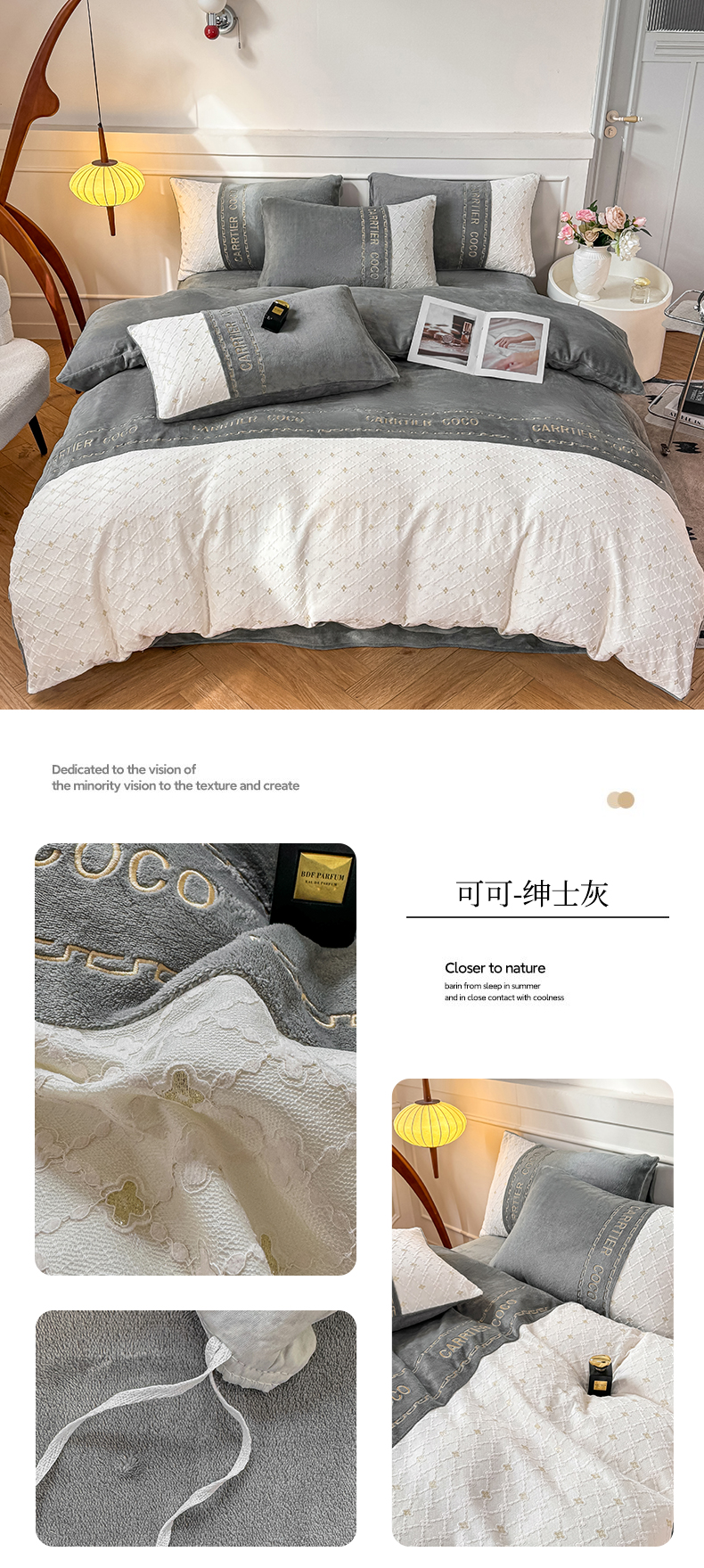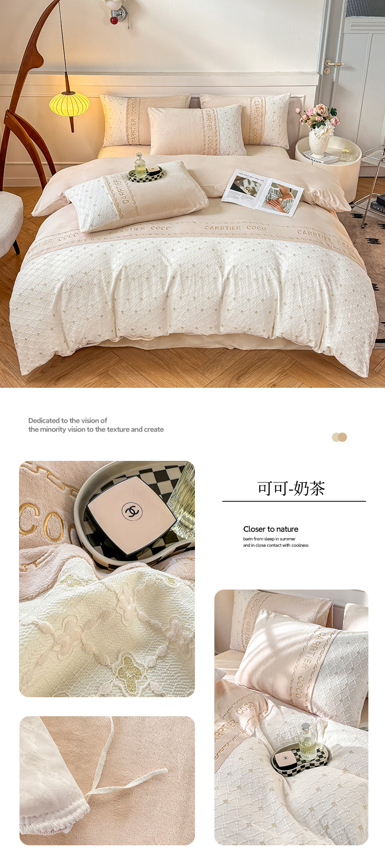 当前位置: 91家纺网 > 商品网购 > 床品套件 > 四件套 > 牛奶绒四件套 > 灰鲸 2025新款牛奶绒拼接刺绣雕花四件套-可可 可可-风铃紫