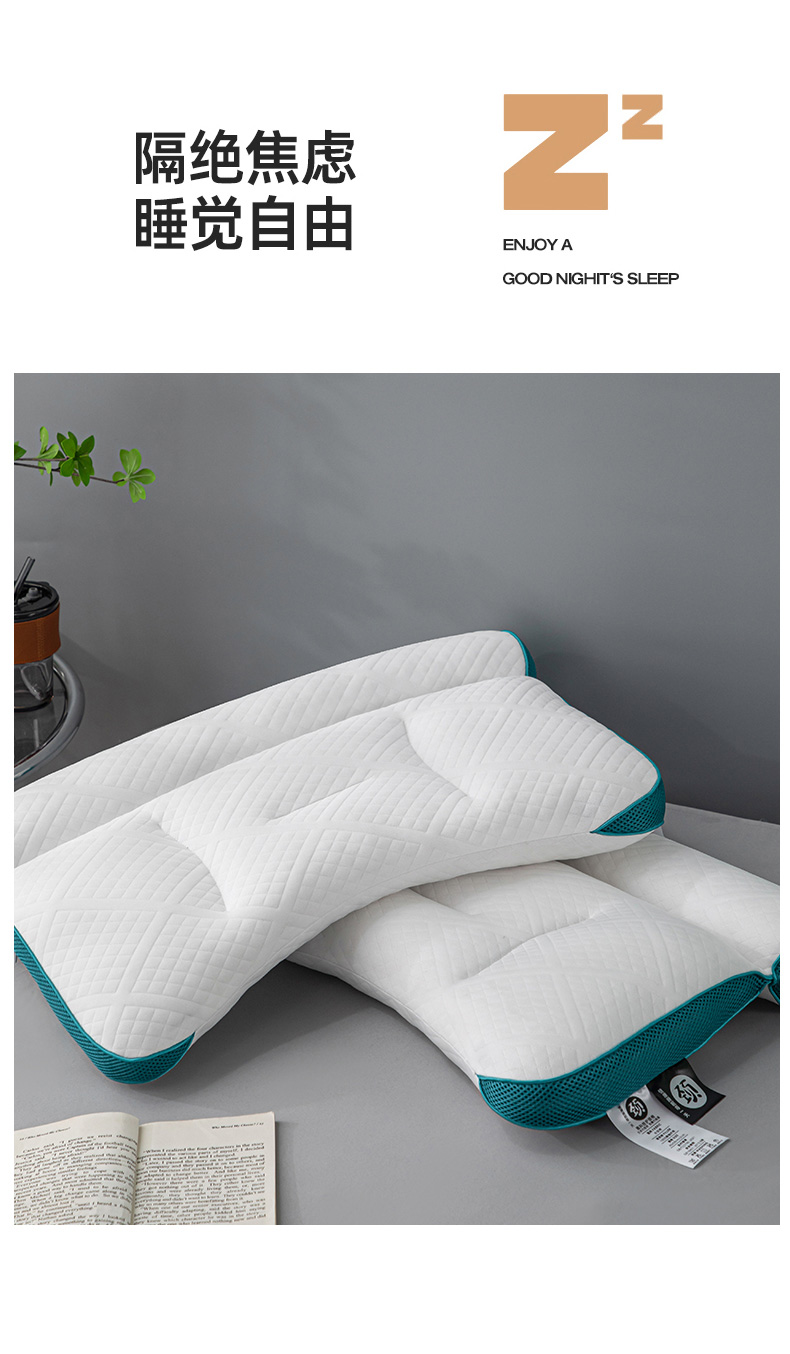 珍贝家纺 2025新款反牵引颈椎枕枕头枕芯 颈枕-蓝色边