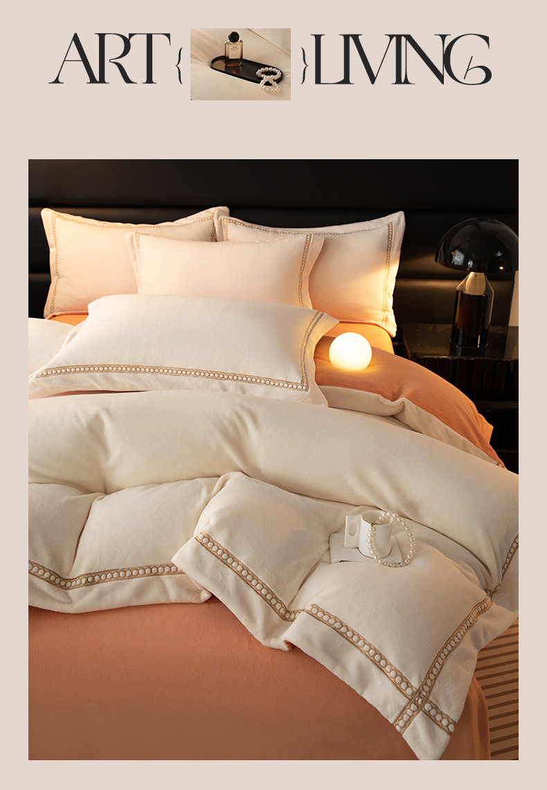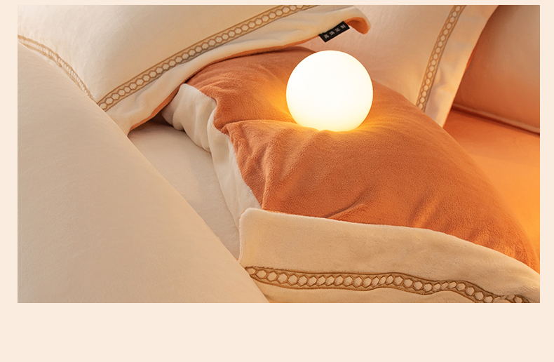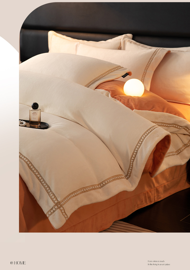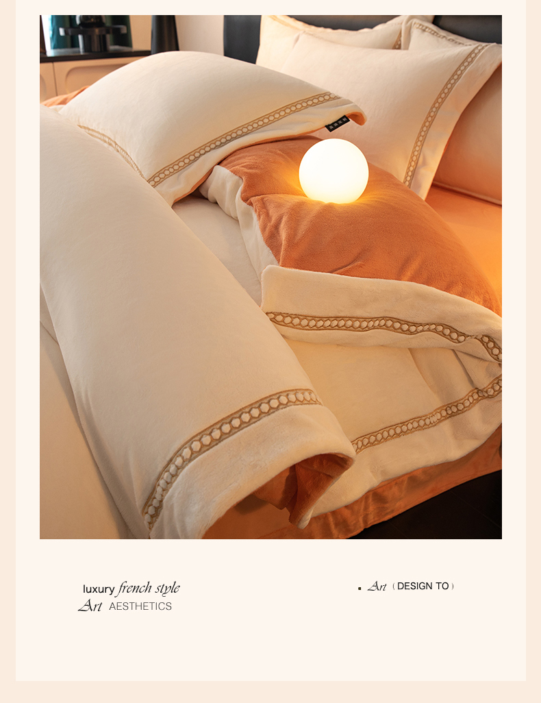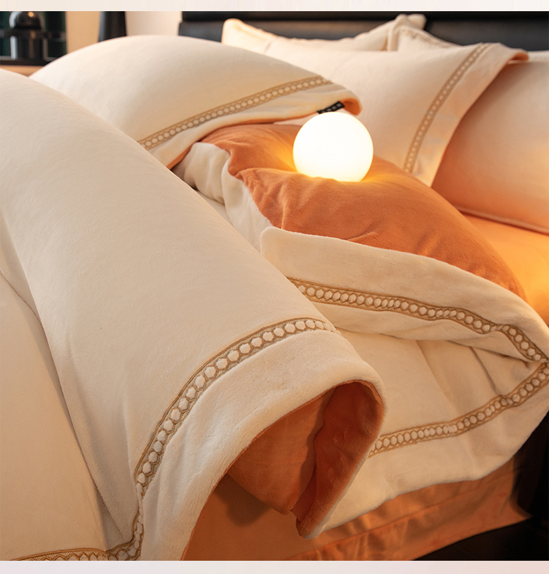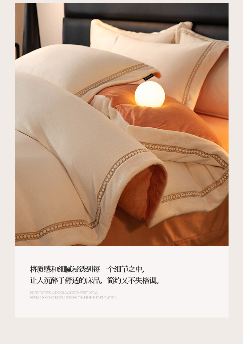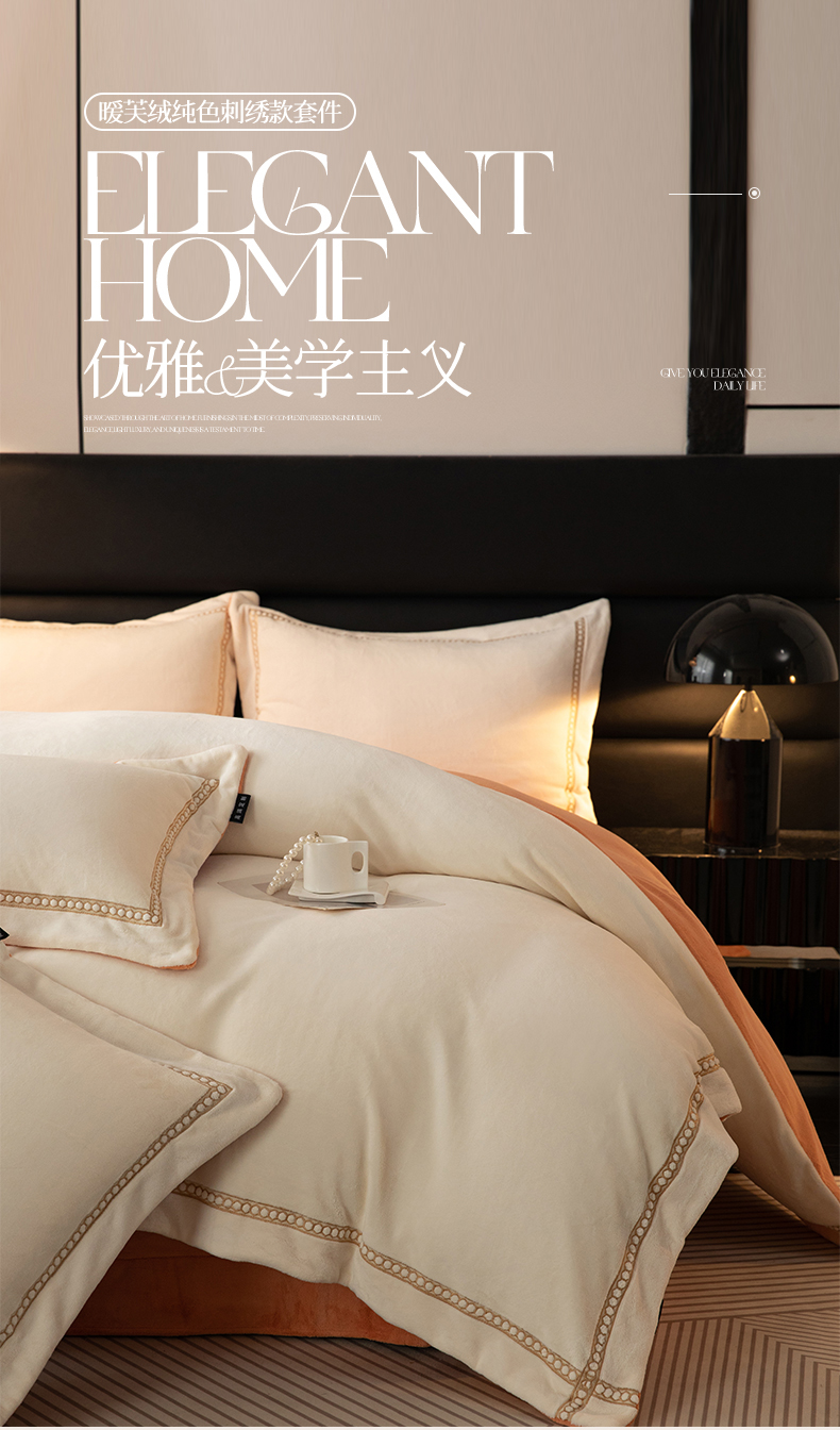 商品名称:暖洋家纺 2025新款暖芙绒纯色刺绣款套件四件套 杏仁
