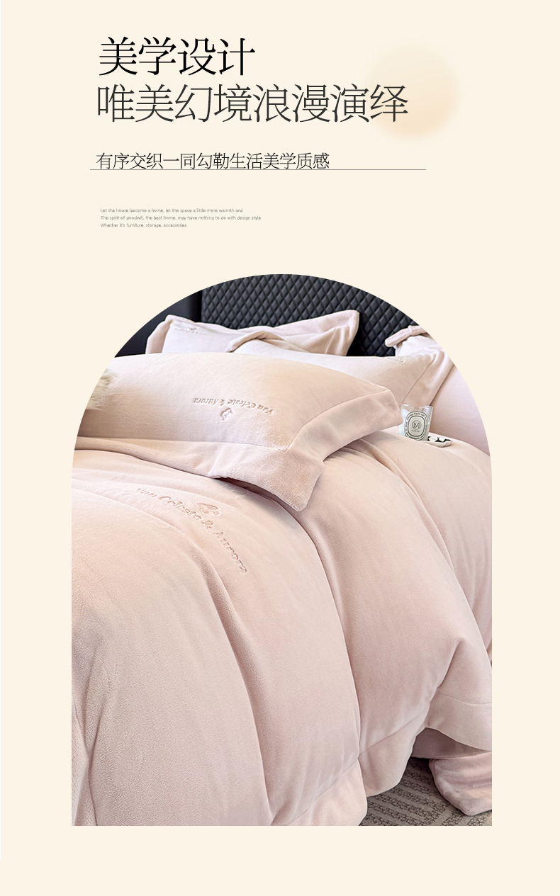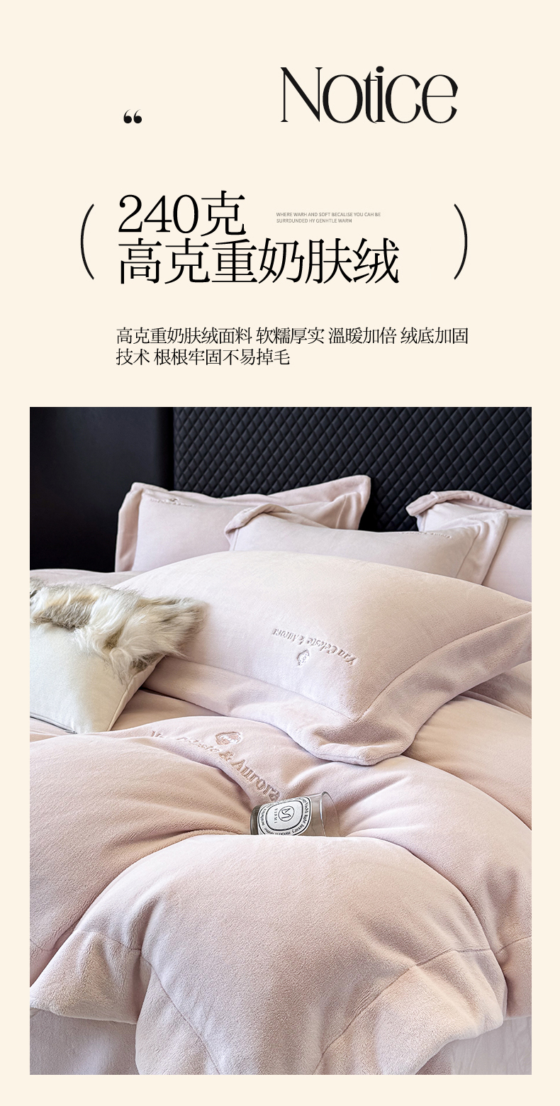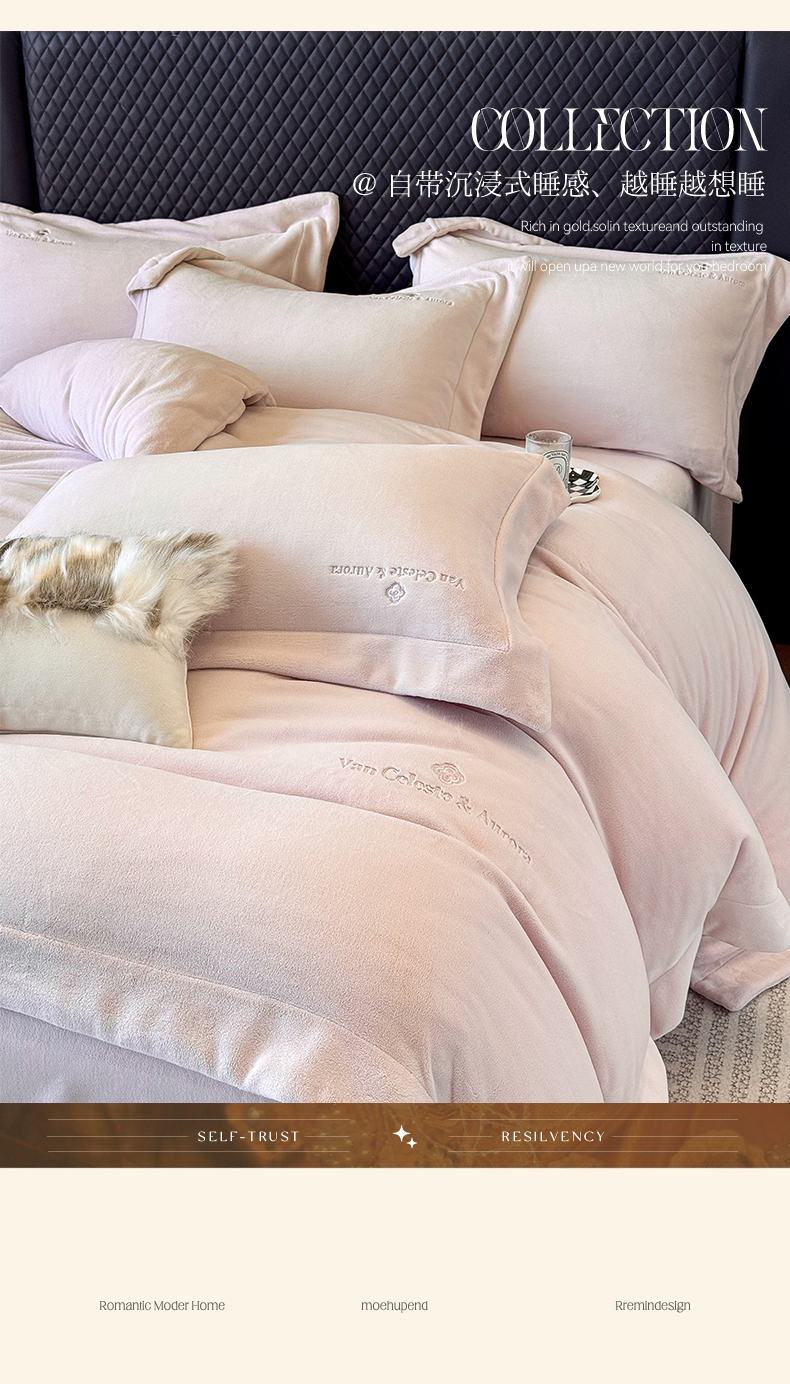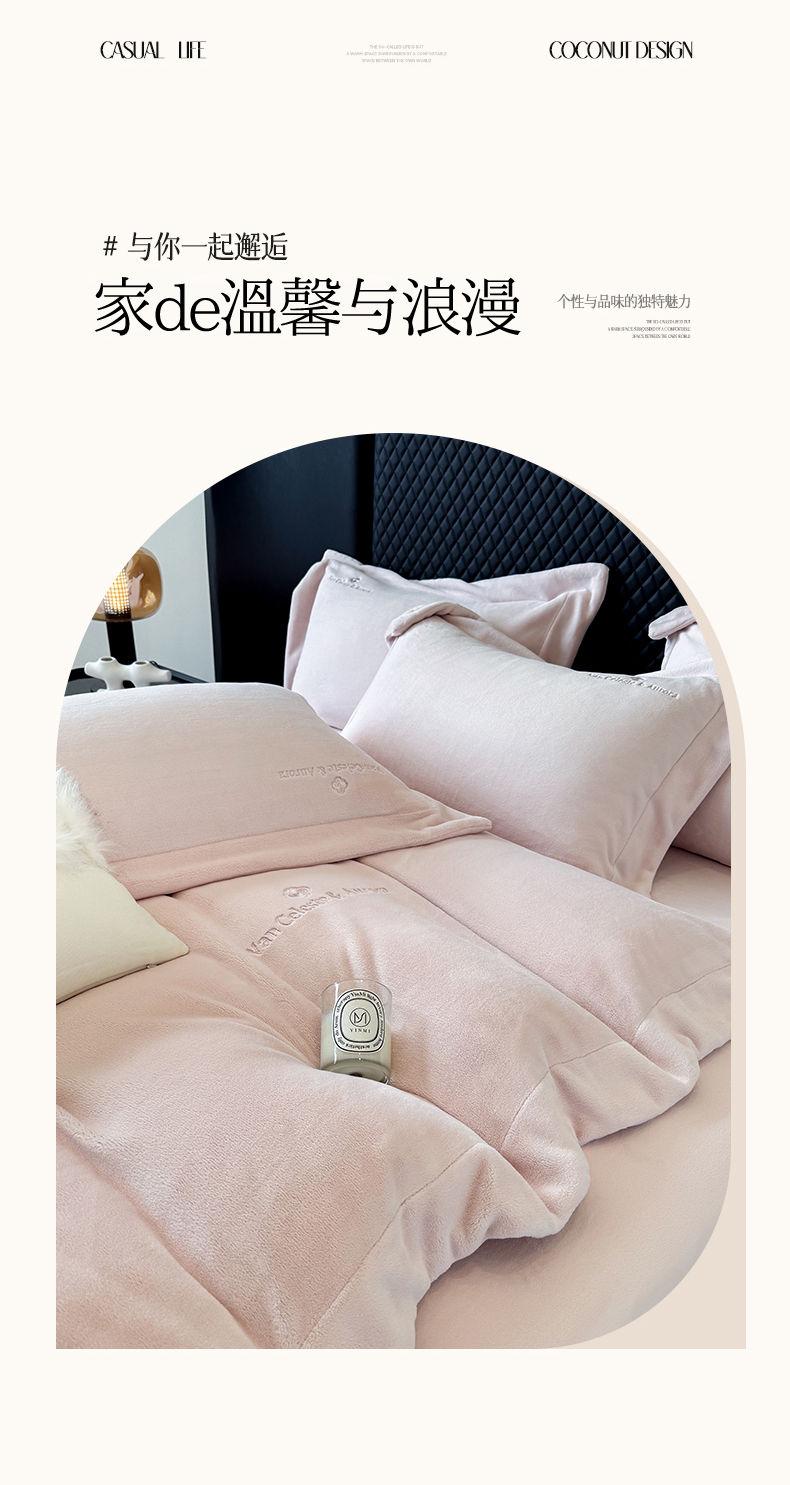 商品名称:泽西家纺+V17798841158发大图 2025新品秋冬加厚保暖240克奶肤绒简约风刺绣牛奶绒四件套-梵克雅宝 梵克雅宝-粉色
